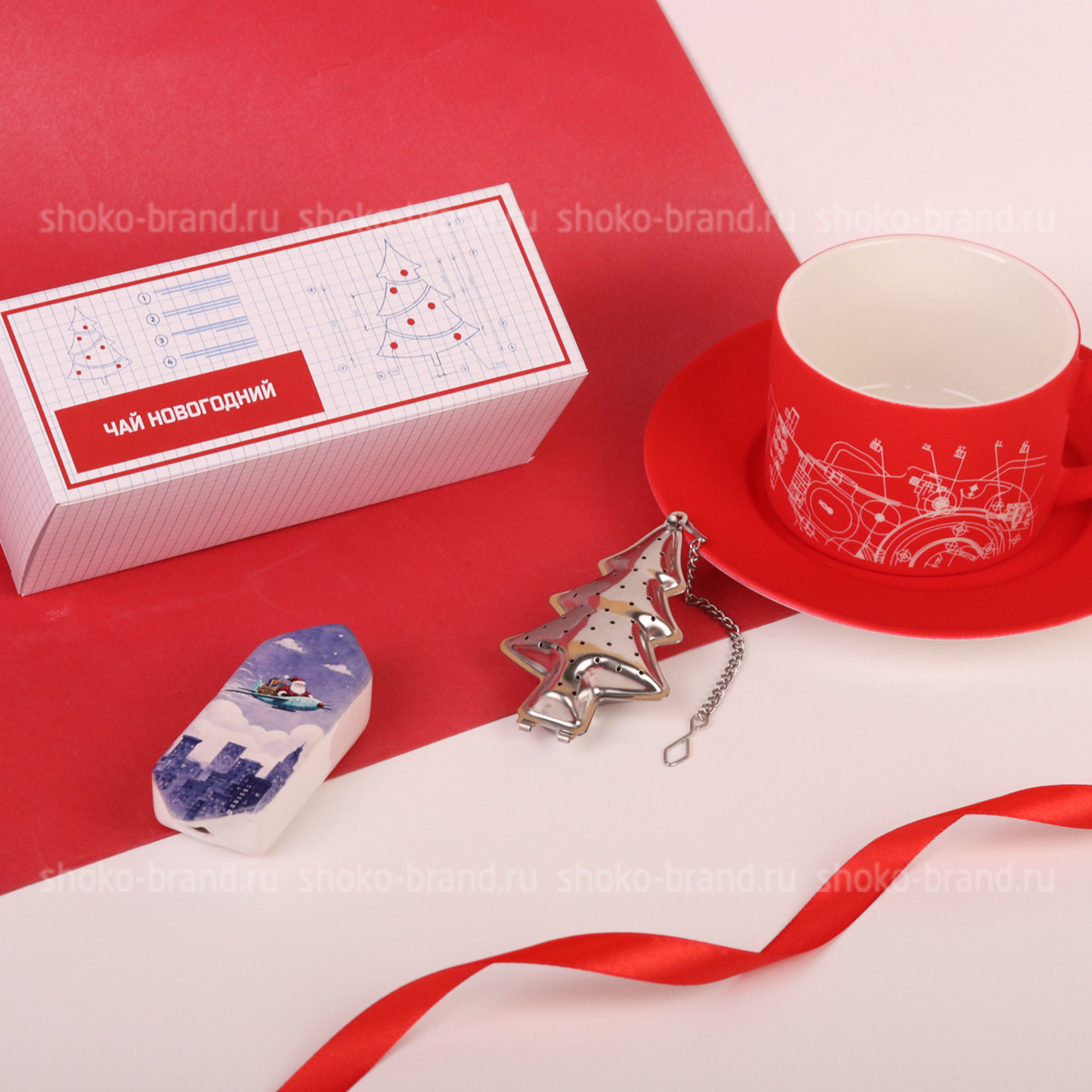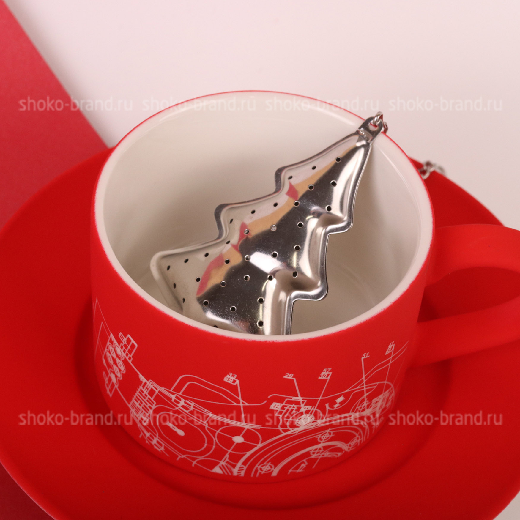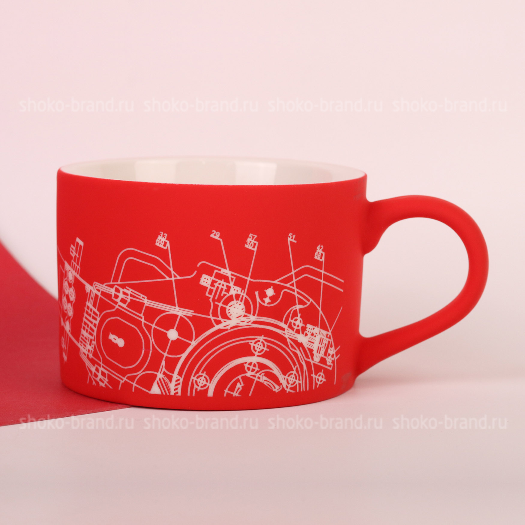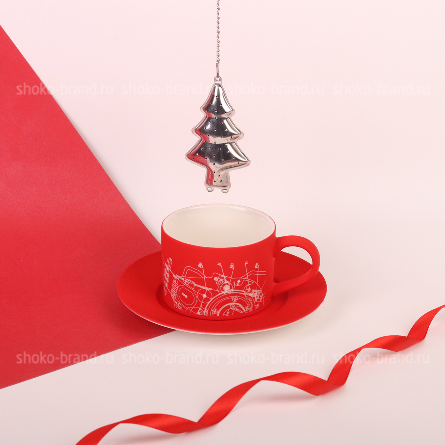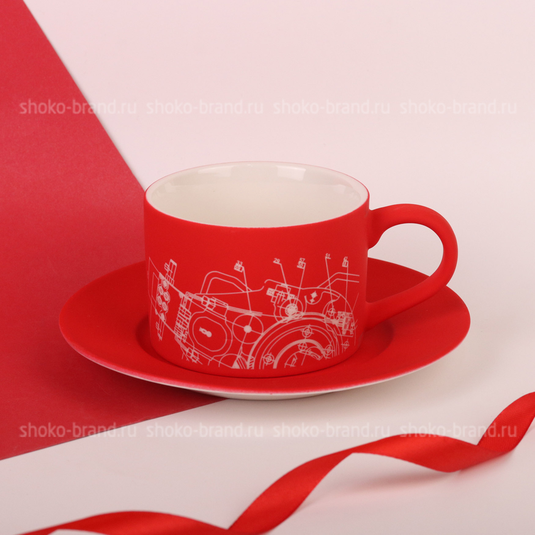 - Чайная пара фарфор; покрытие софт-тач, красная 220 мл