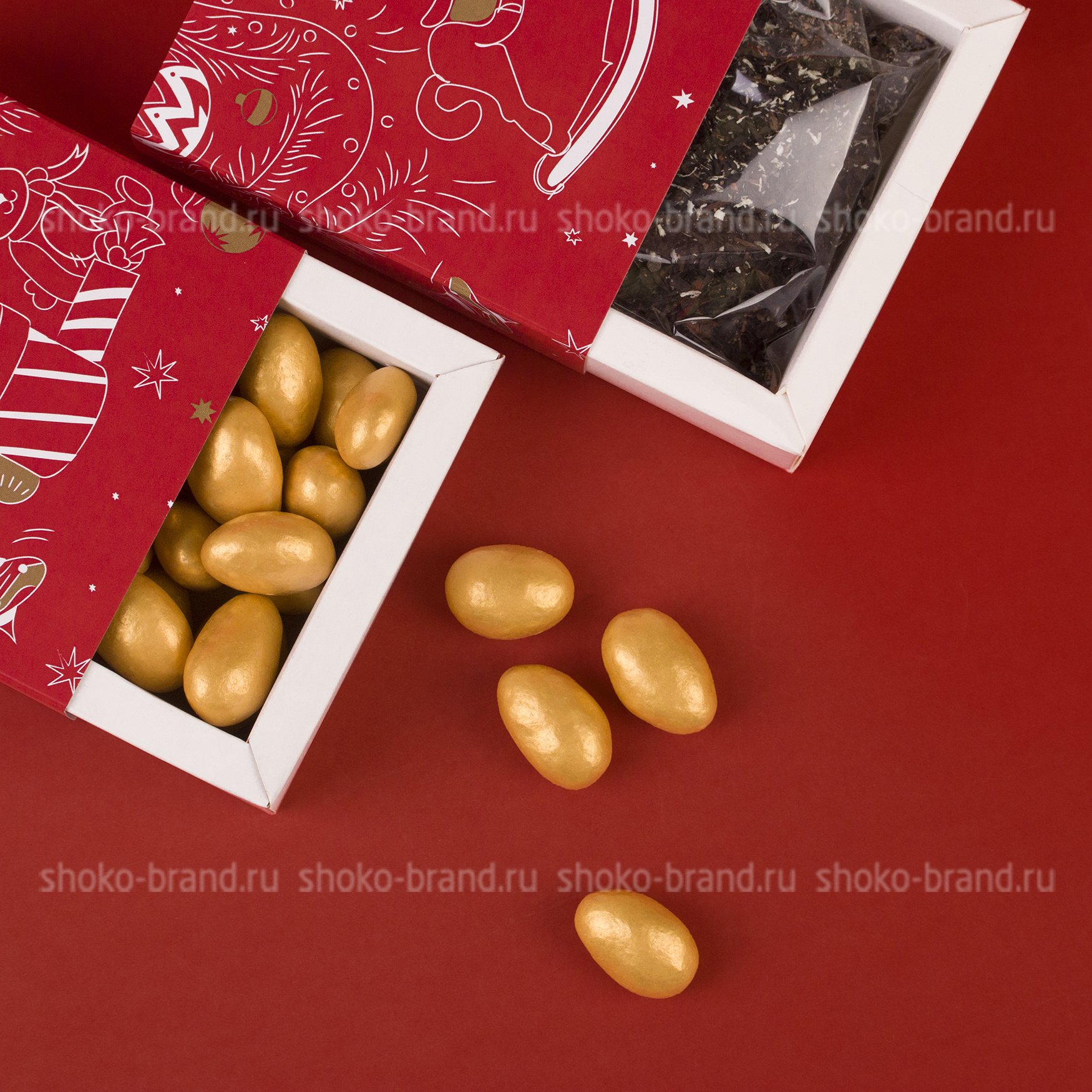 - Миндаль в золотой глазури и шоколаде в коробочке 100 г
