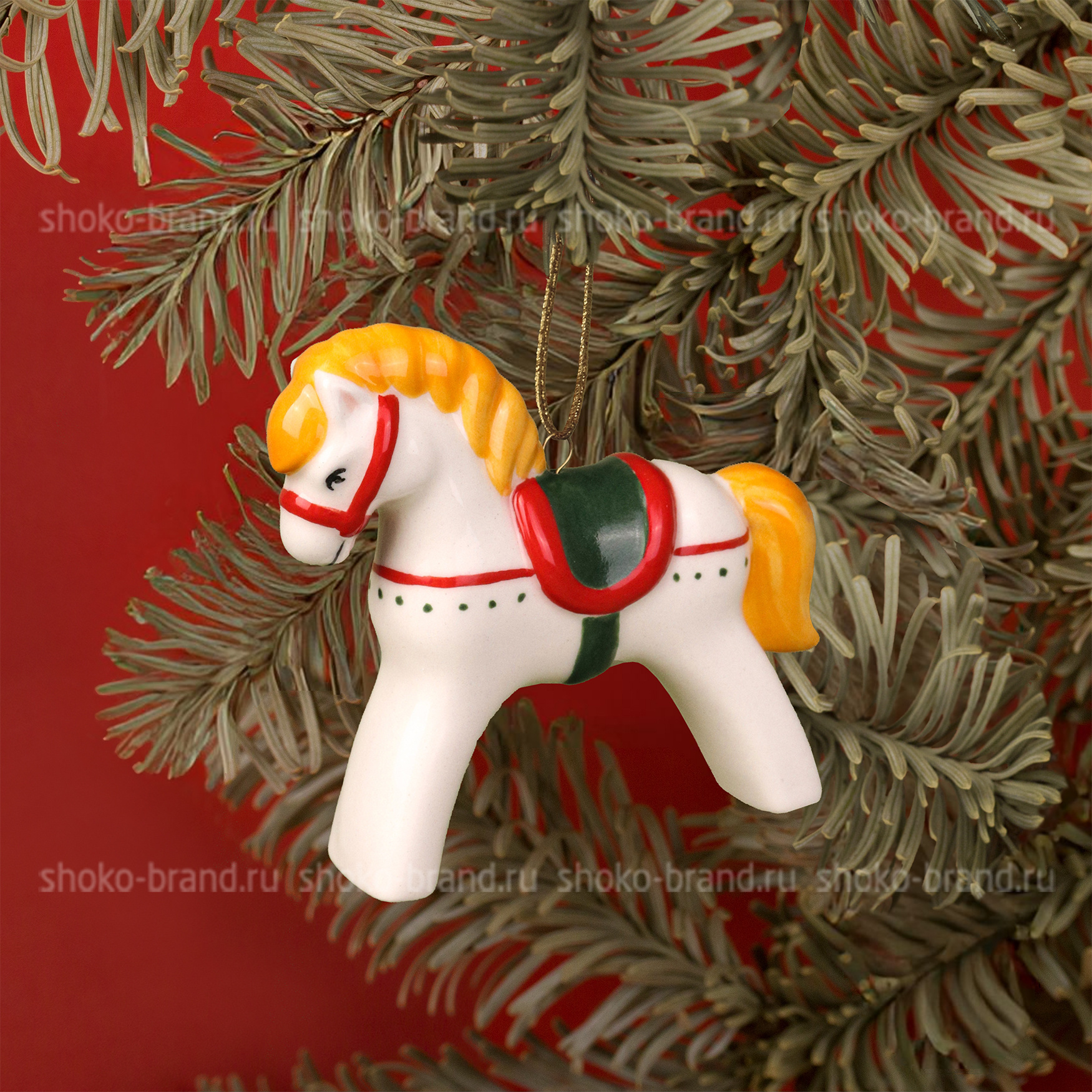 - Игрушка елочная Конь-символ года, фарфор, ручная роспись