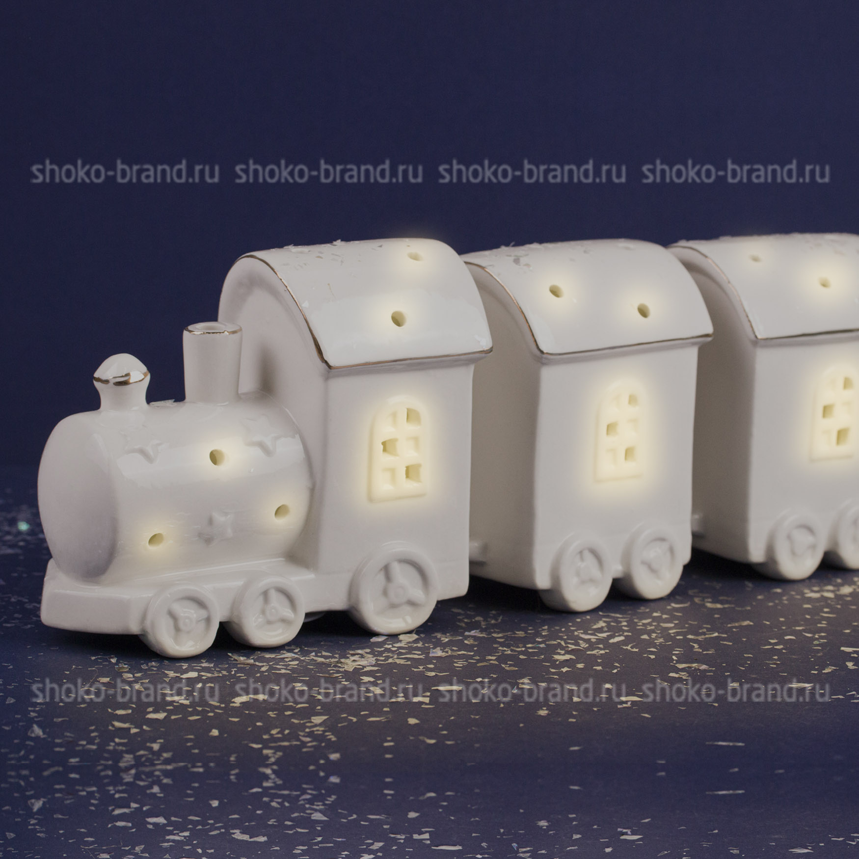 - Игрушка-светильник Новогодний поезд, 3 элемента, фарфор, ручная роспись