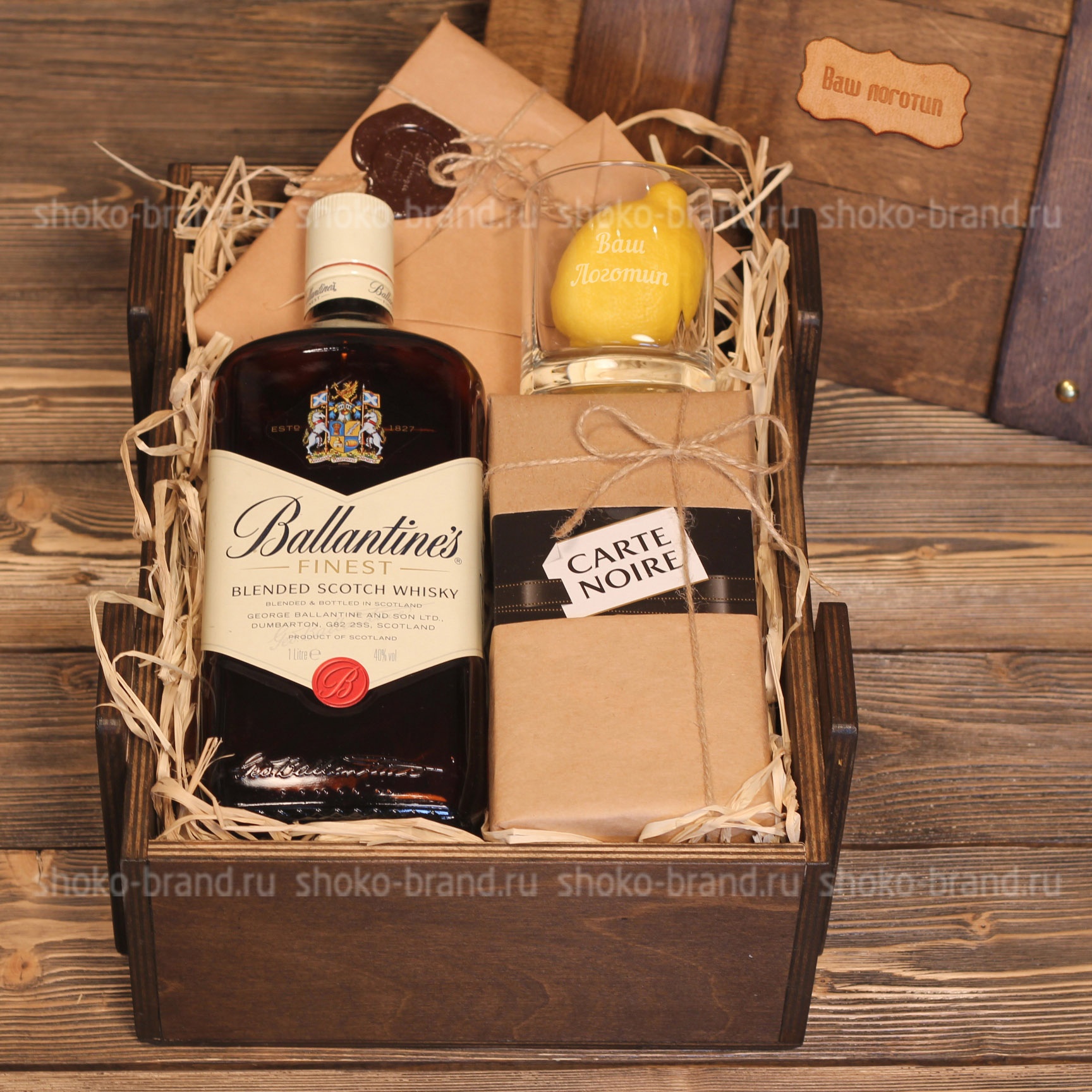 Подарочный набор «Аристократ» предназначен для особенных случаев. В набор входит виски "Балантайс", стакан для виски, кофе и лимон.