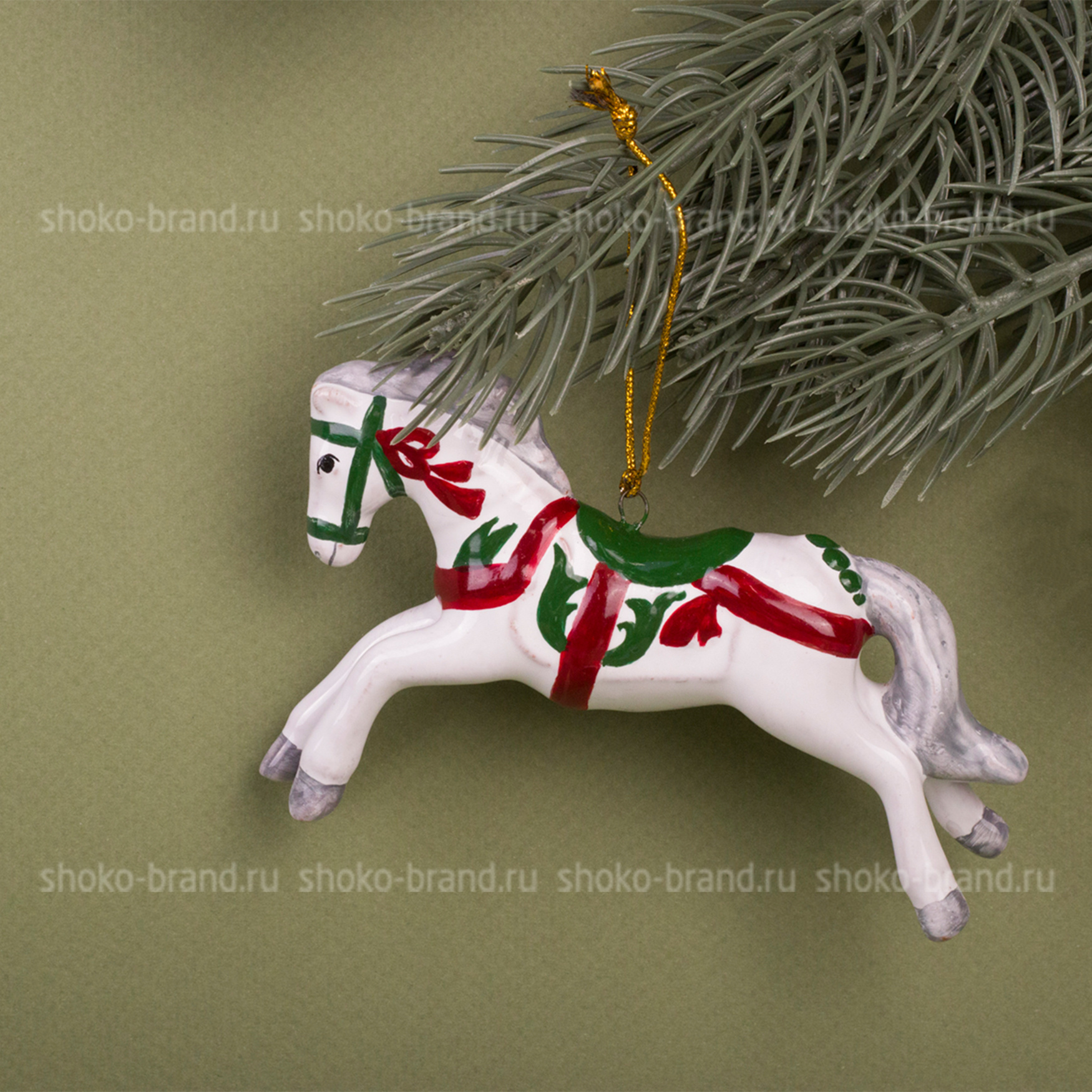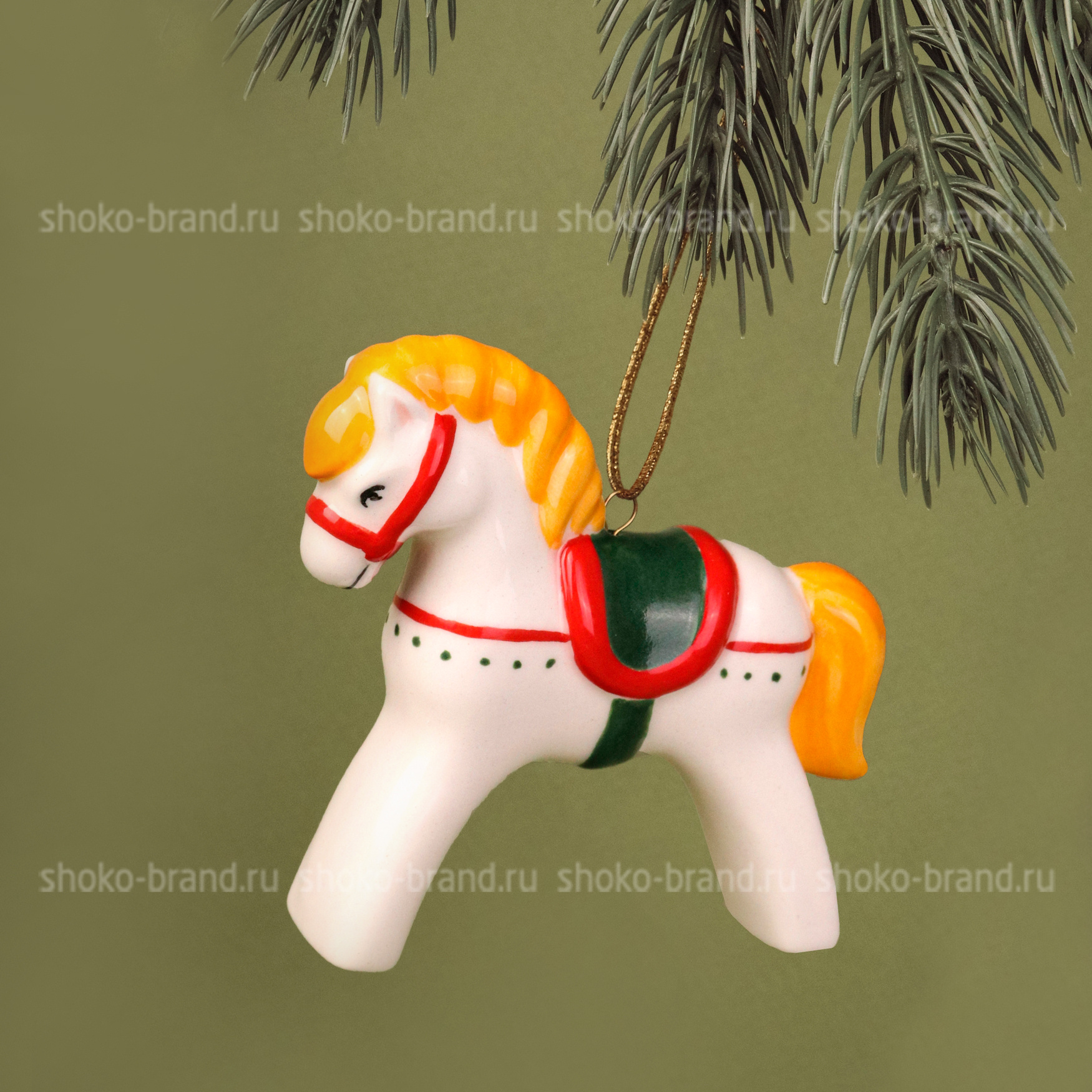 - Игрушка елочная Конь-символ года, фарфор, ручная роспись