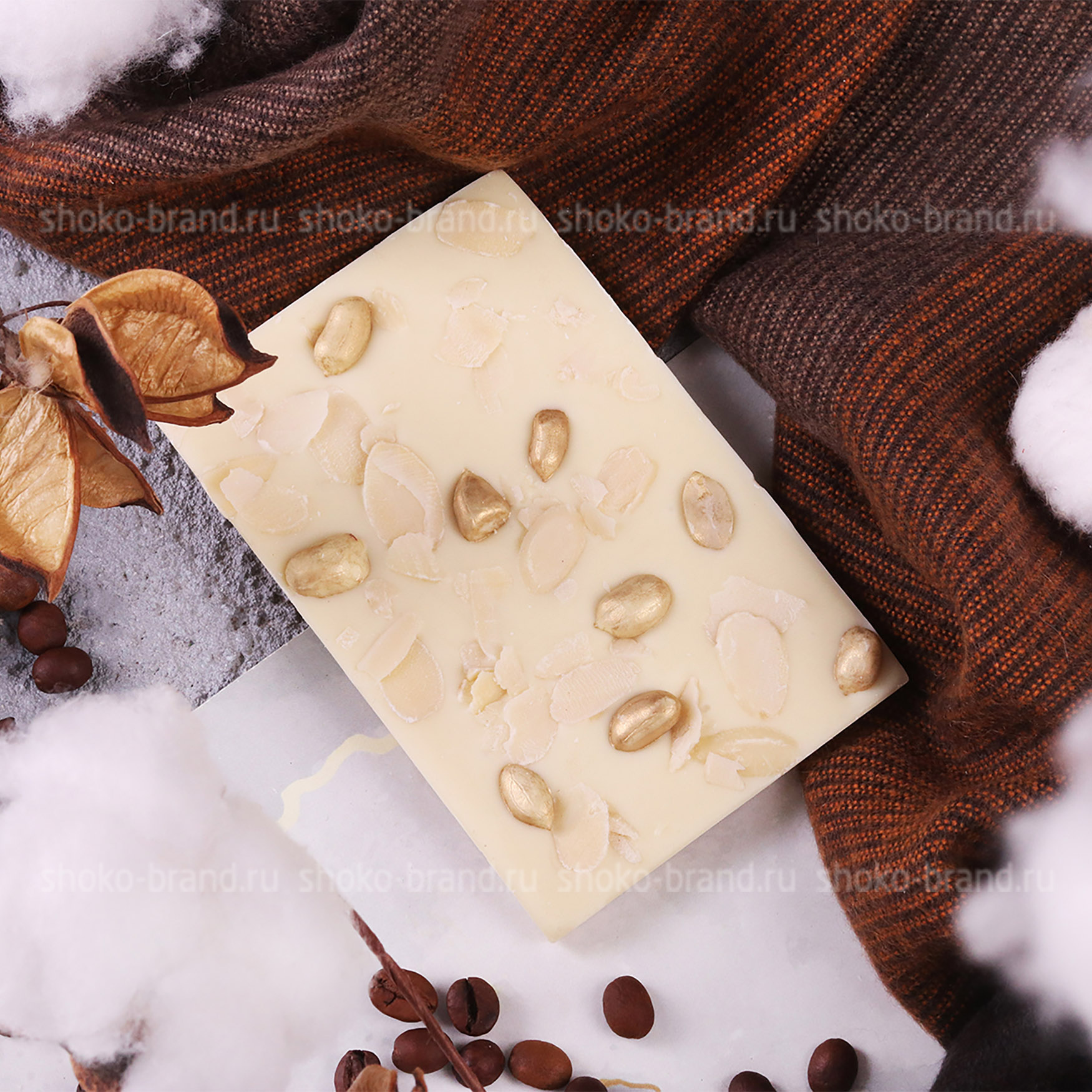 - Белый шоколад с арахисом и лепестками миндаля, ручная работа 75 г