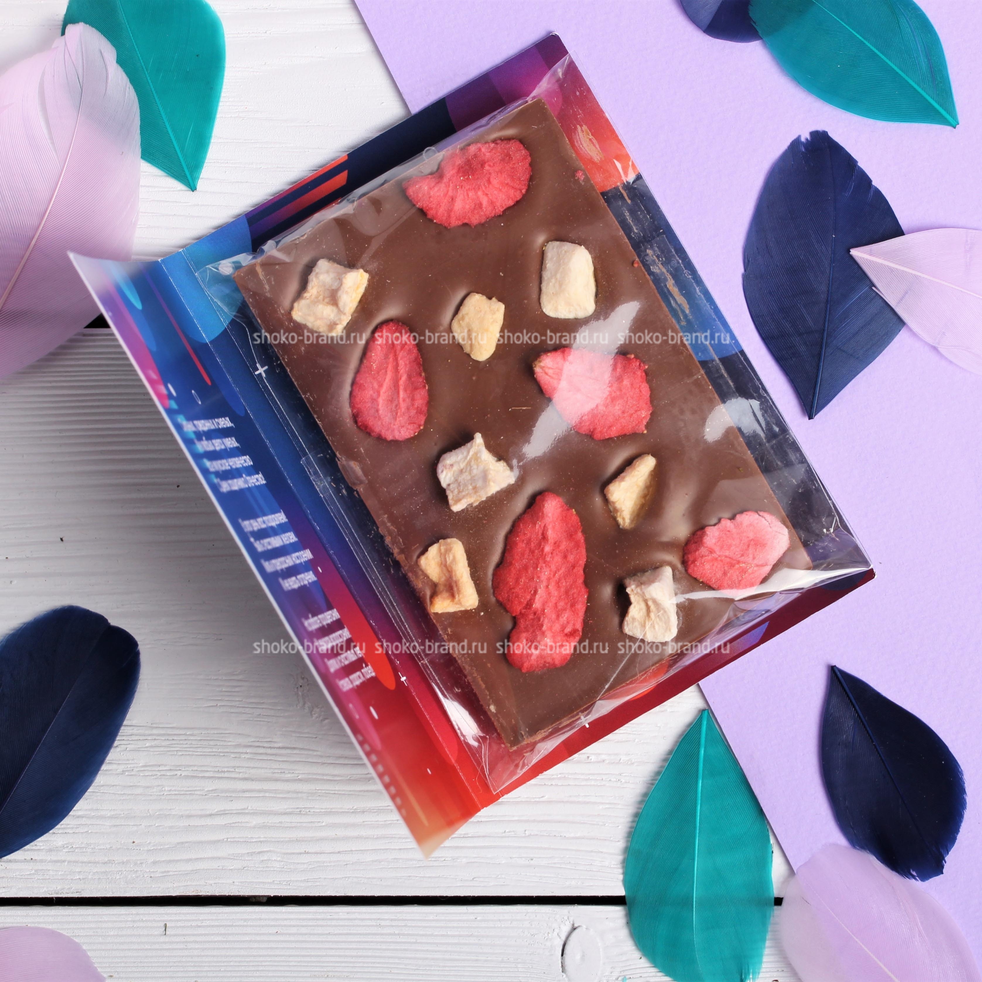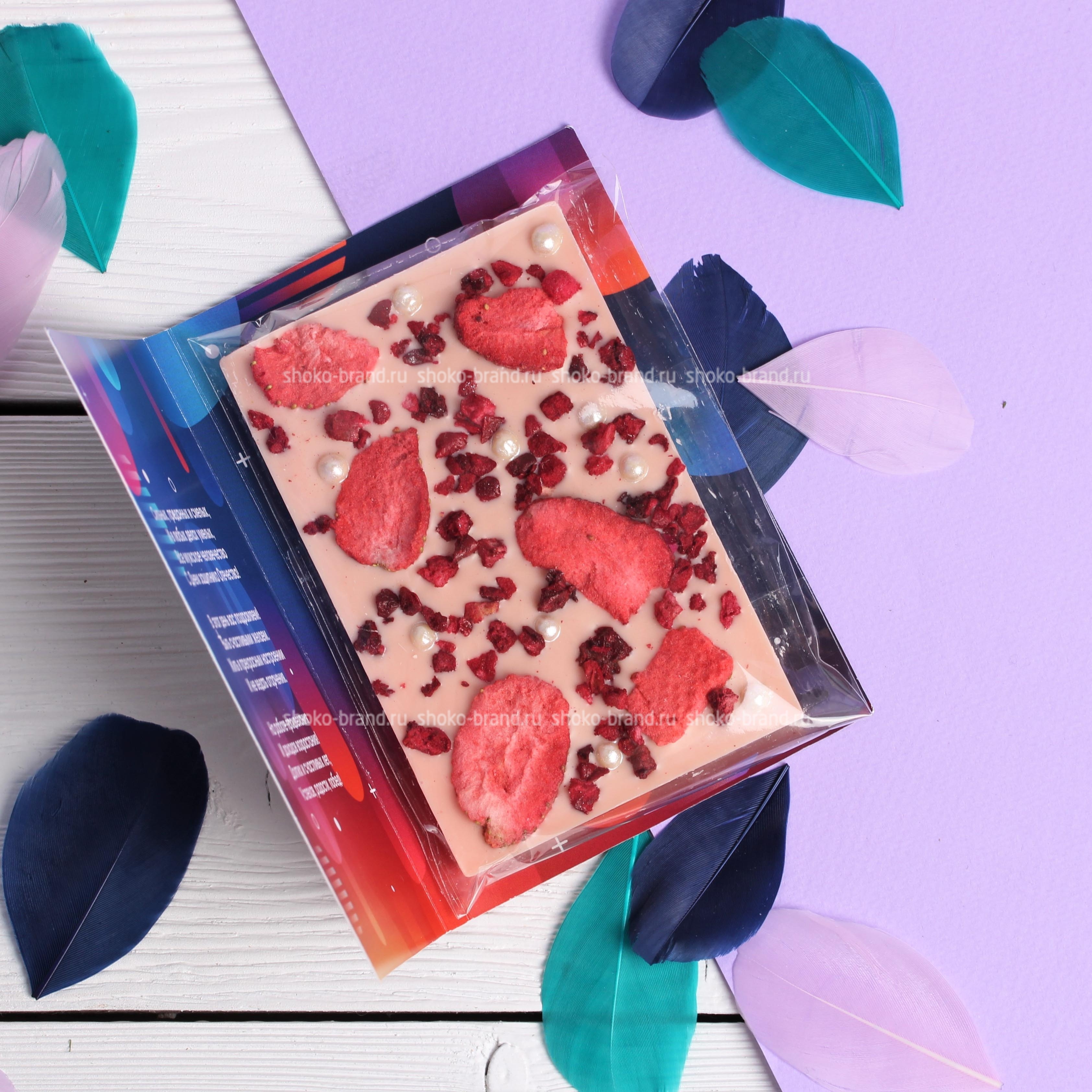 - Розовый шоколад с клубникой, апельсином и фисташкой
