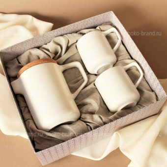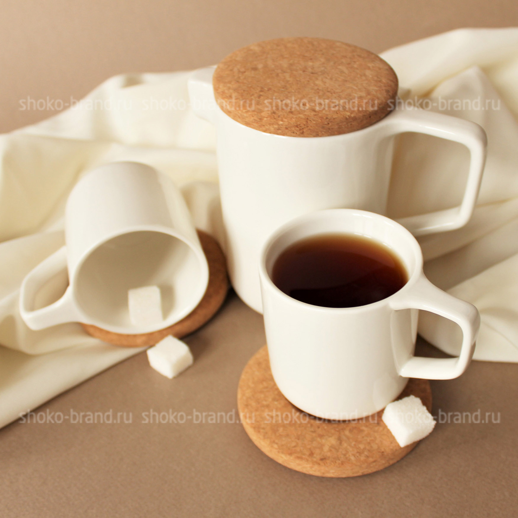 - Чашки с подставкой из пробки, фарфор, 220 мл 2 шт
