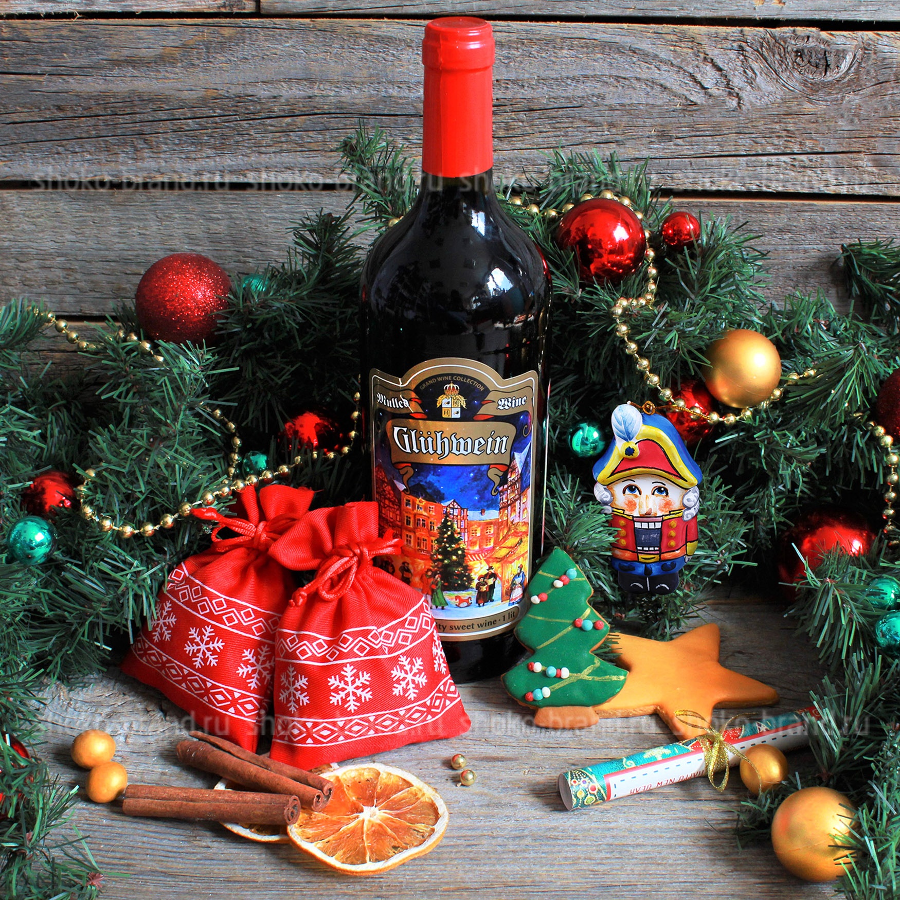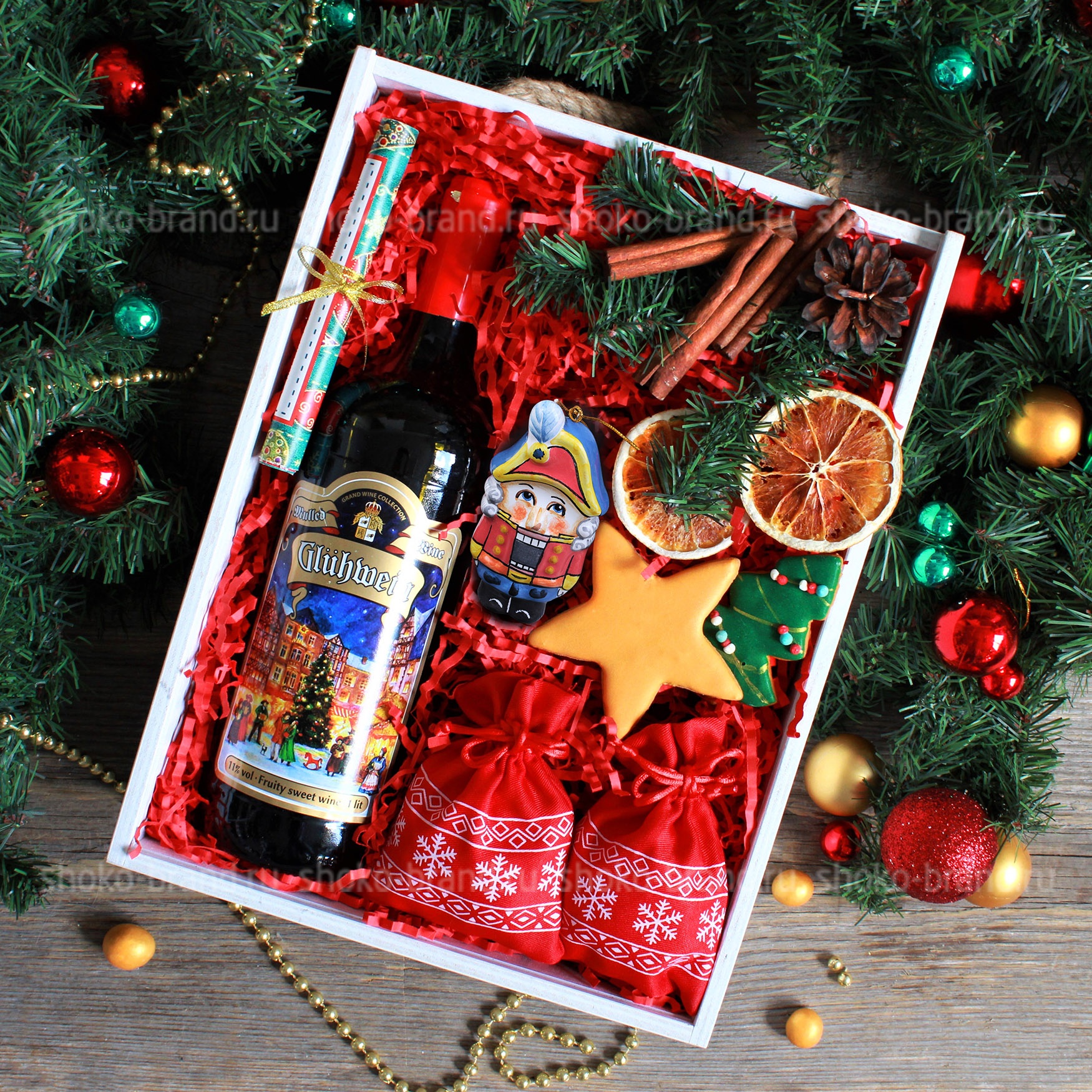 Подарок с глинтвейном и игрушкой-щелкунчиком ручной работы