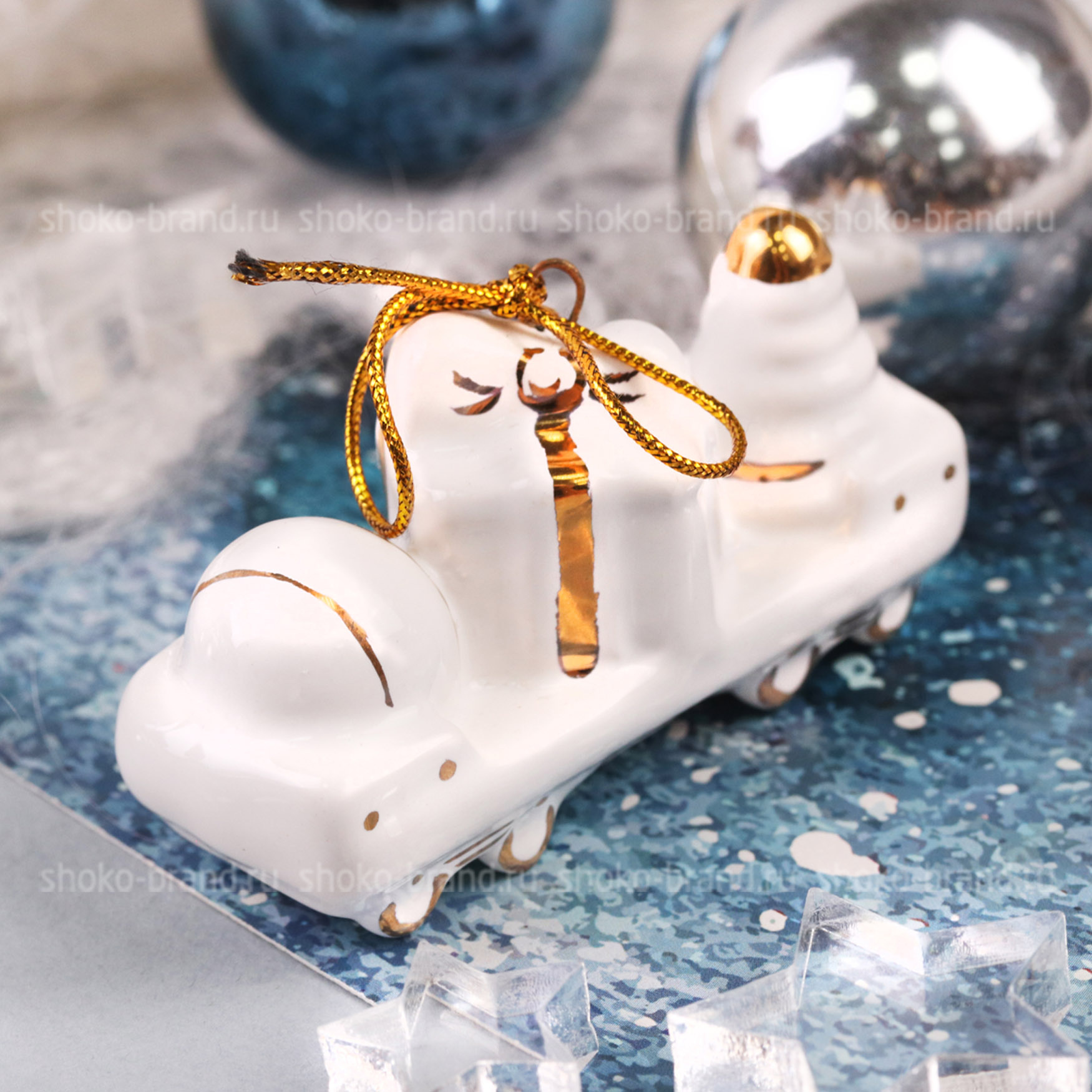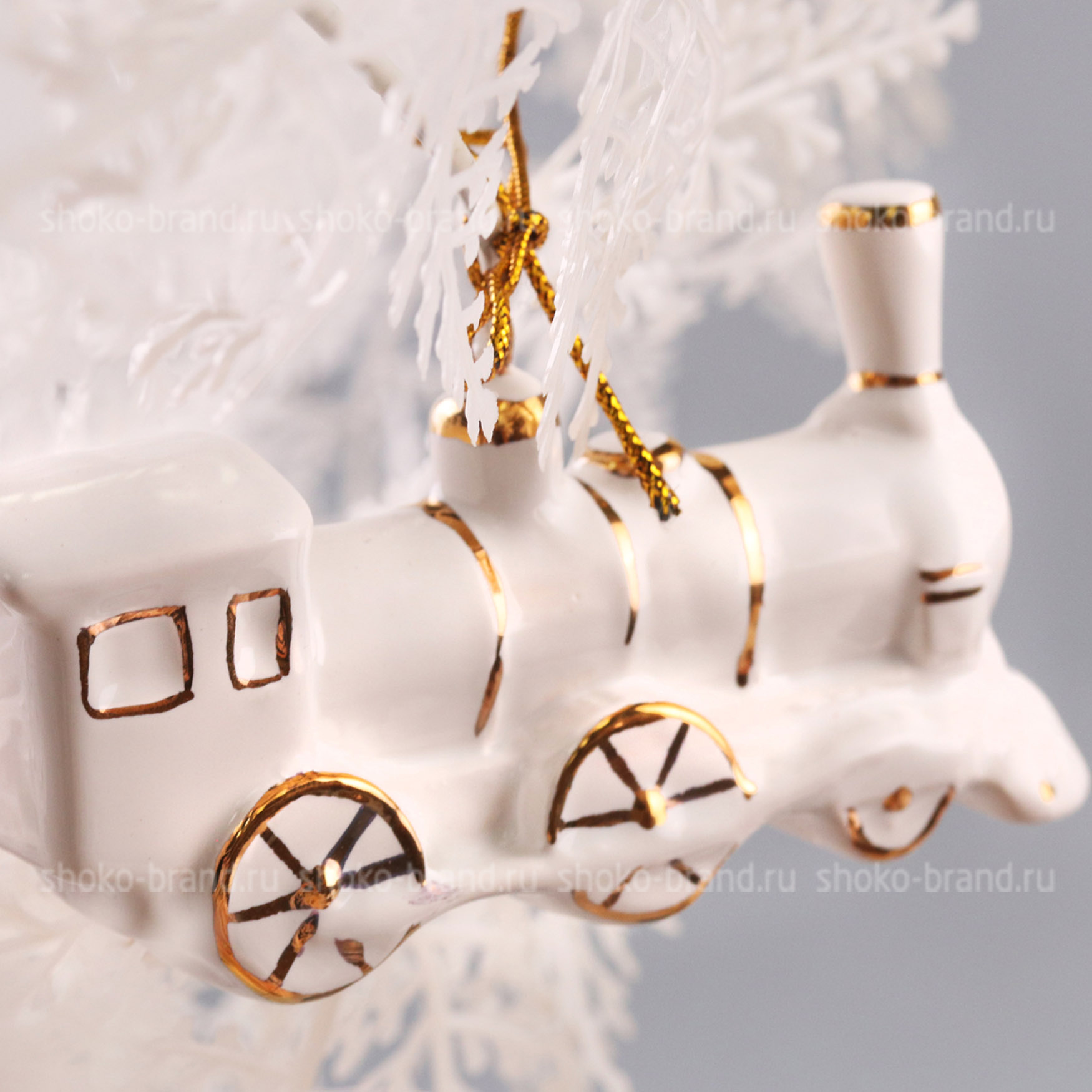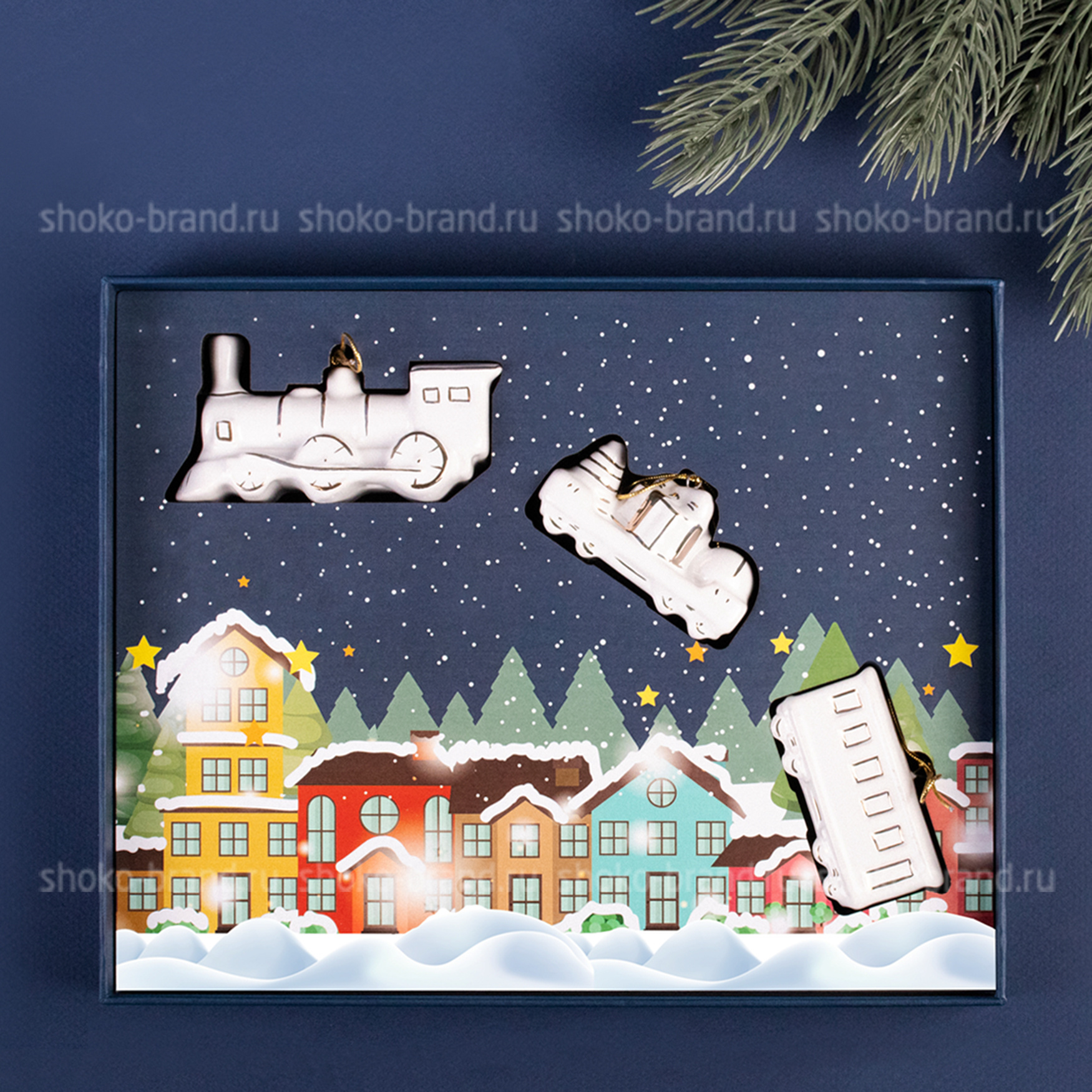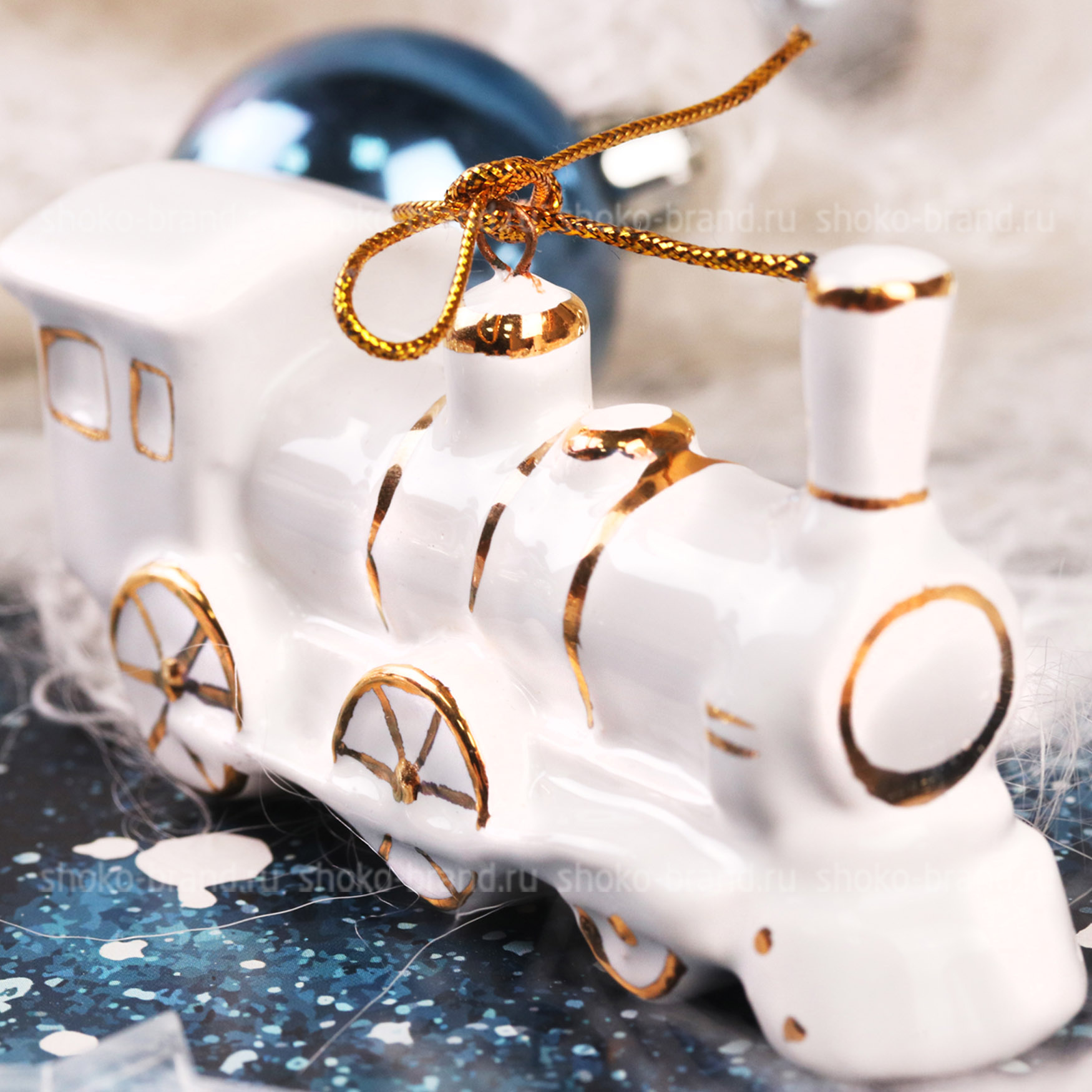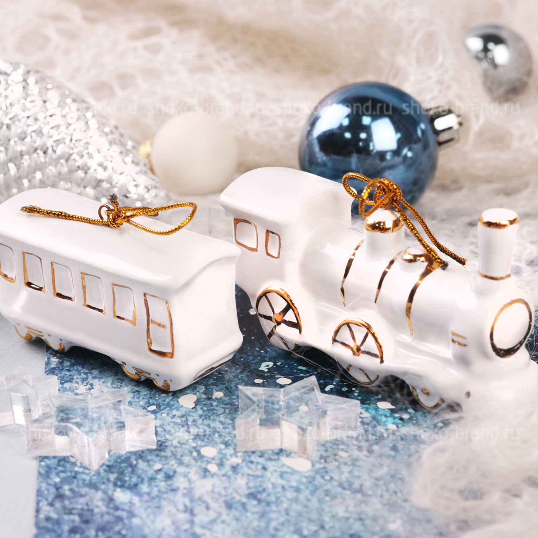 - Игрушка елочная фарфоровая серия Новогодний поезд, ручная роспись 3 шт: