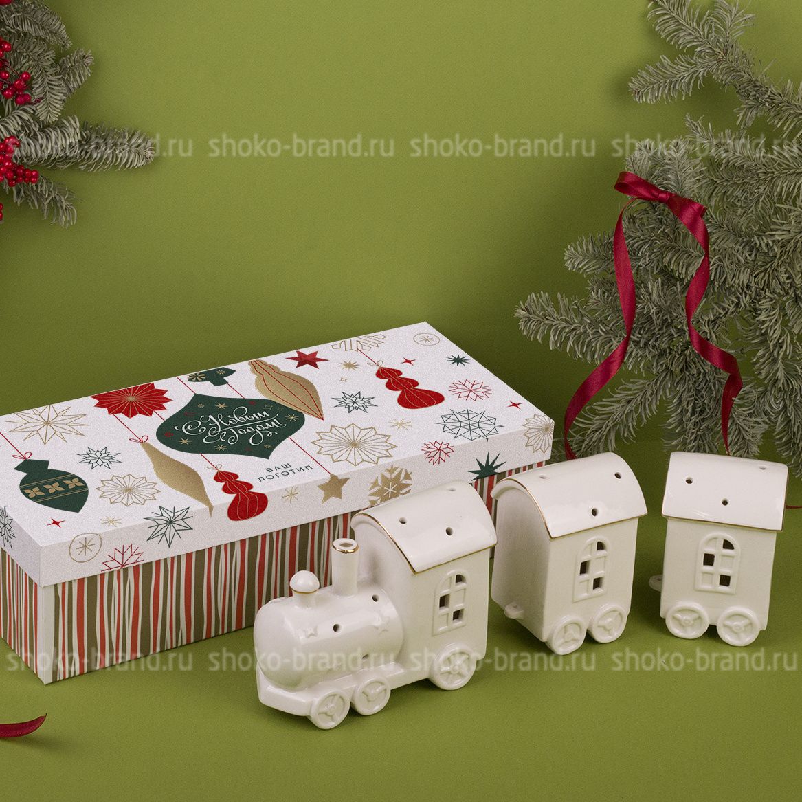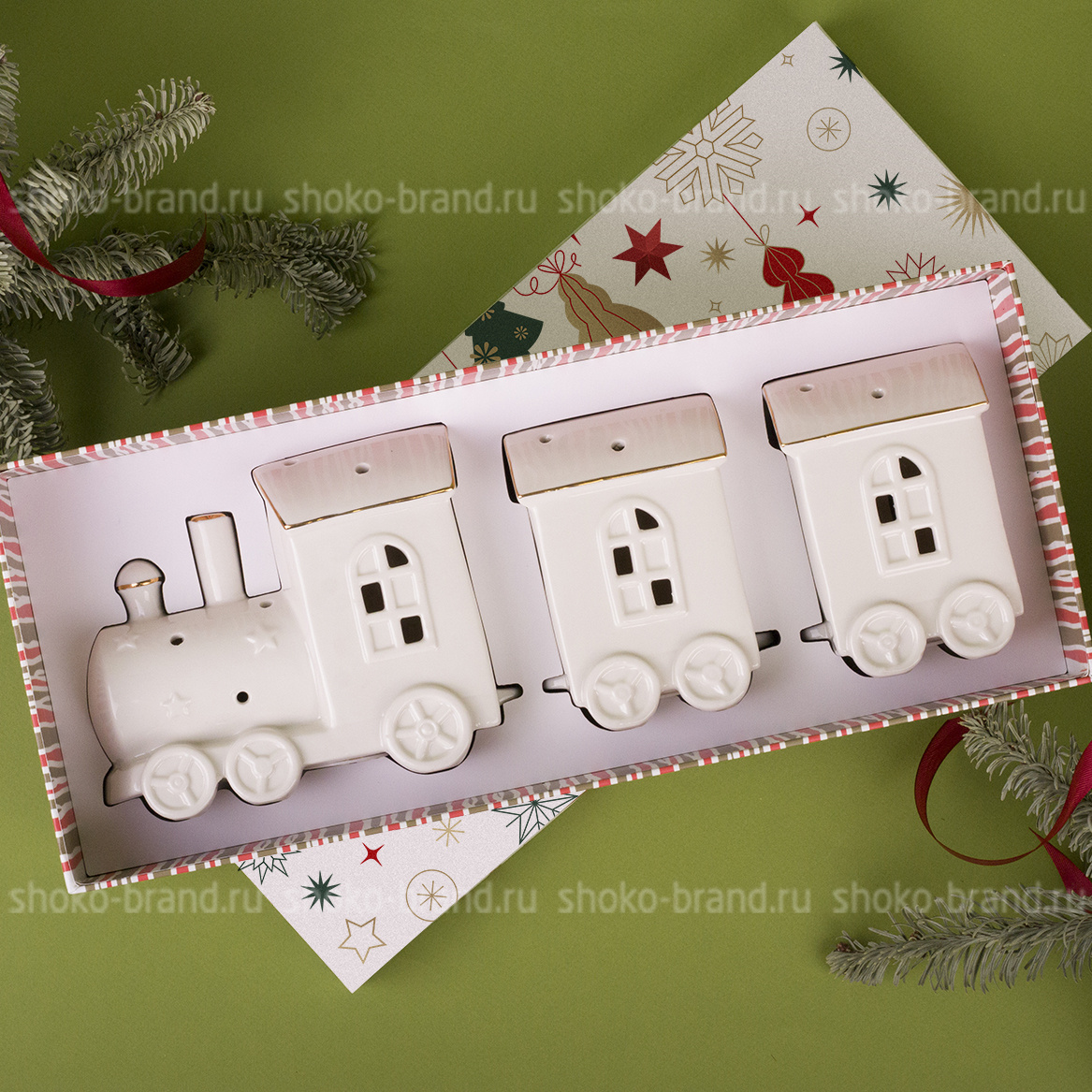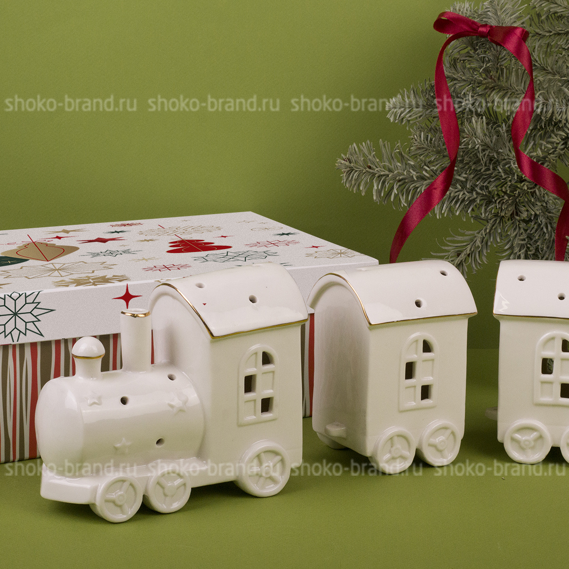 - Игрушка-светильник Новогодний поезд, 3 элемента, фарфор, ручная роспись