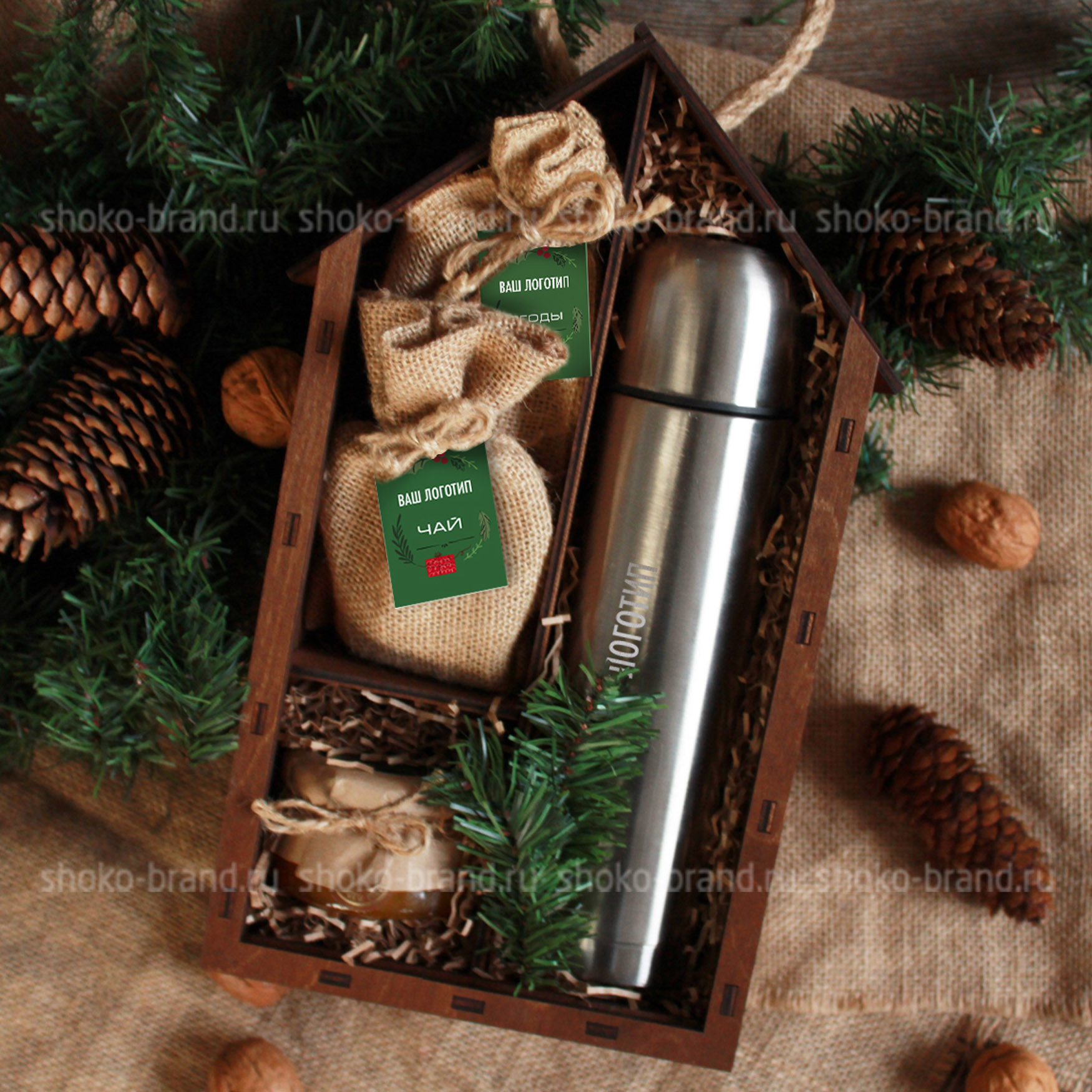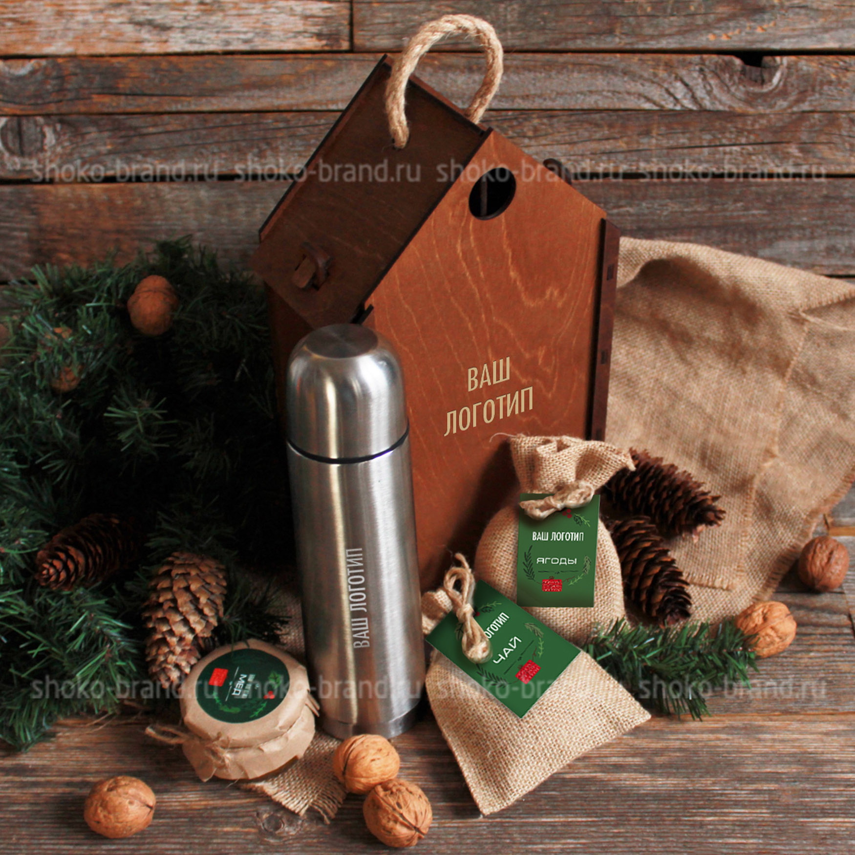 Полезный подарок с термосом, чаем и натуральными сладостями