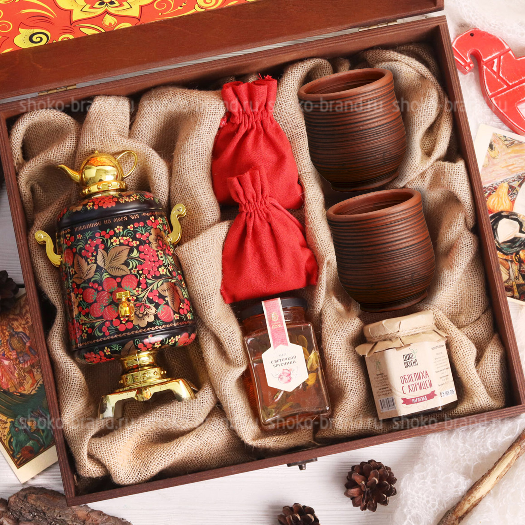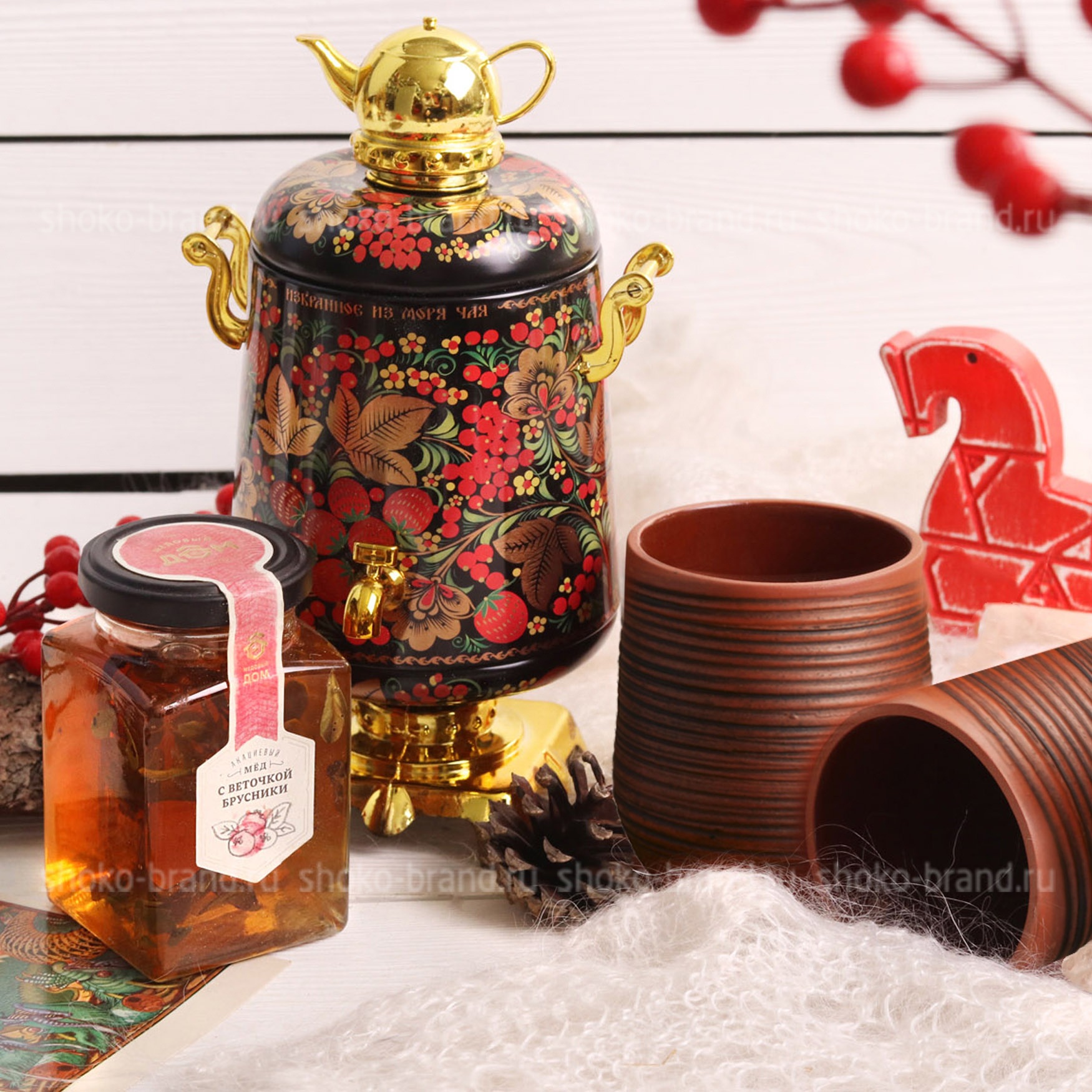 - Самовар с листовым купажем черного и зеленого чая с цветками розы, жасмина, подсолнечника и сафлора 75 г