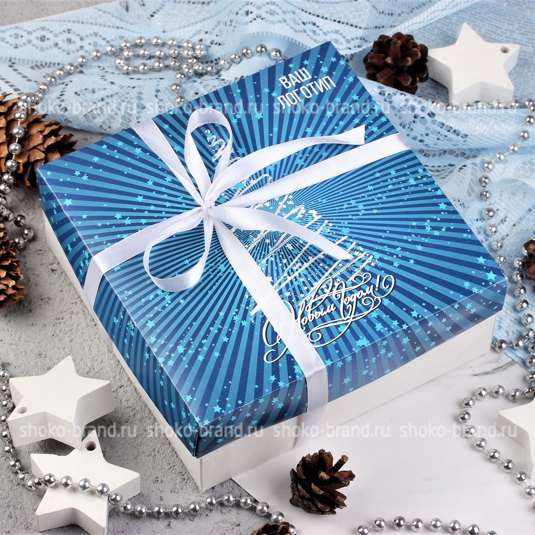 Состав - Коробка из мелованного картона, декорированная лентой в цвет дизайна