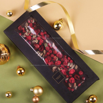 - Бельгийский темный шоколад премиум с малиной, фисташкой и брусникой 100 г