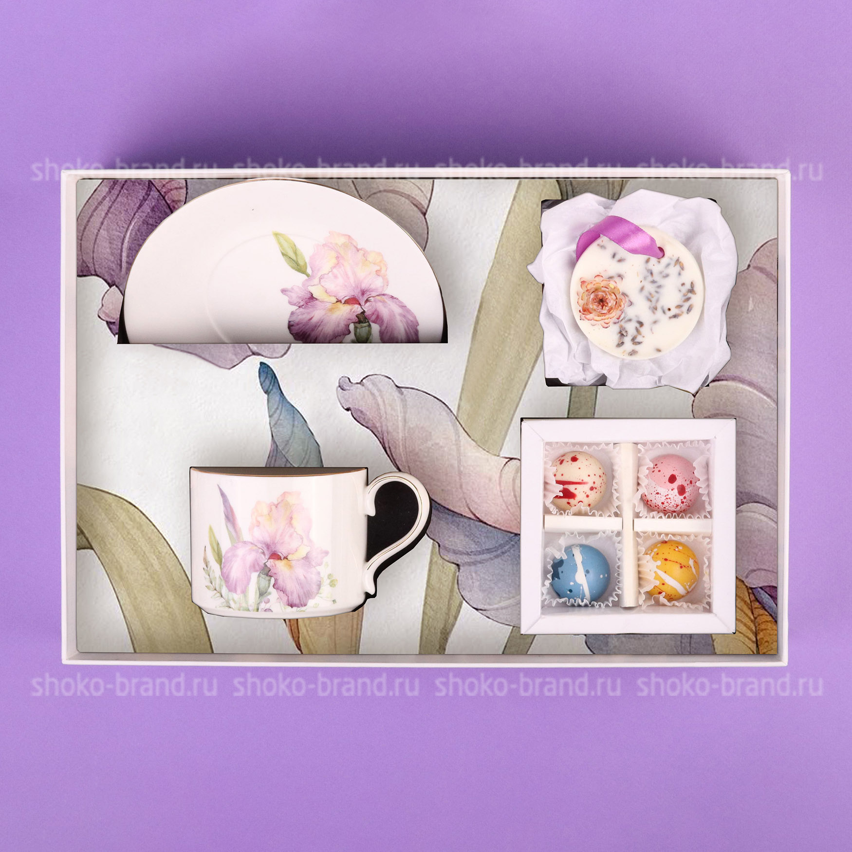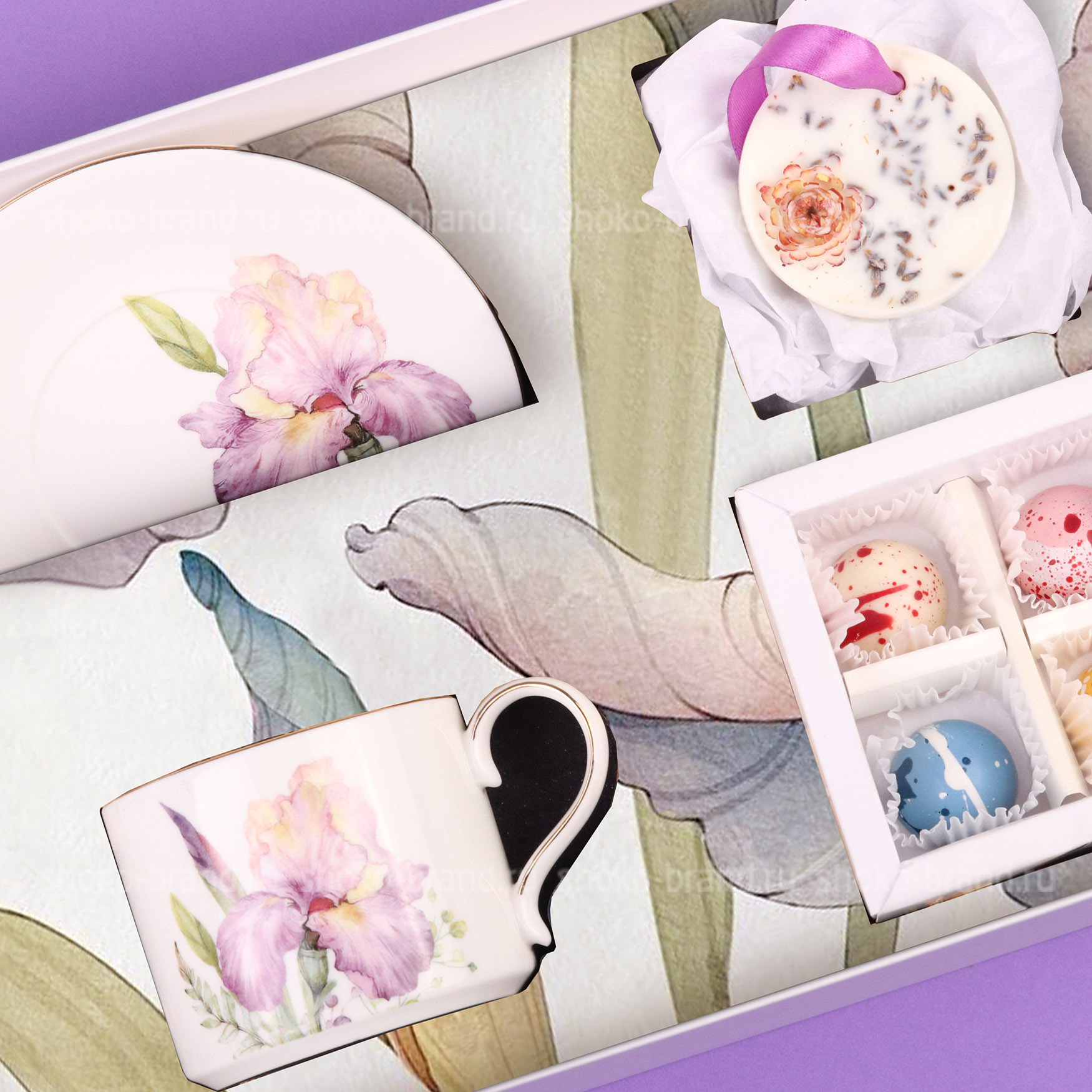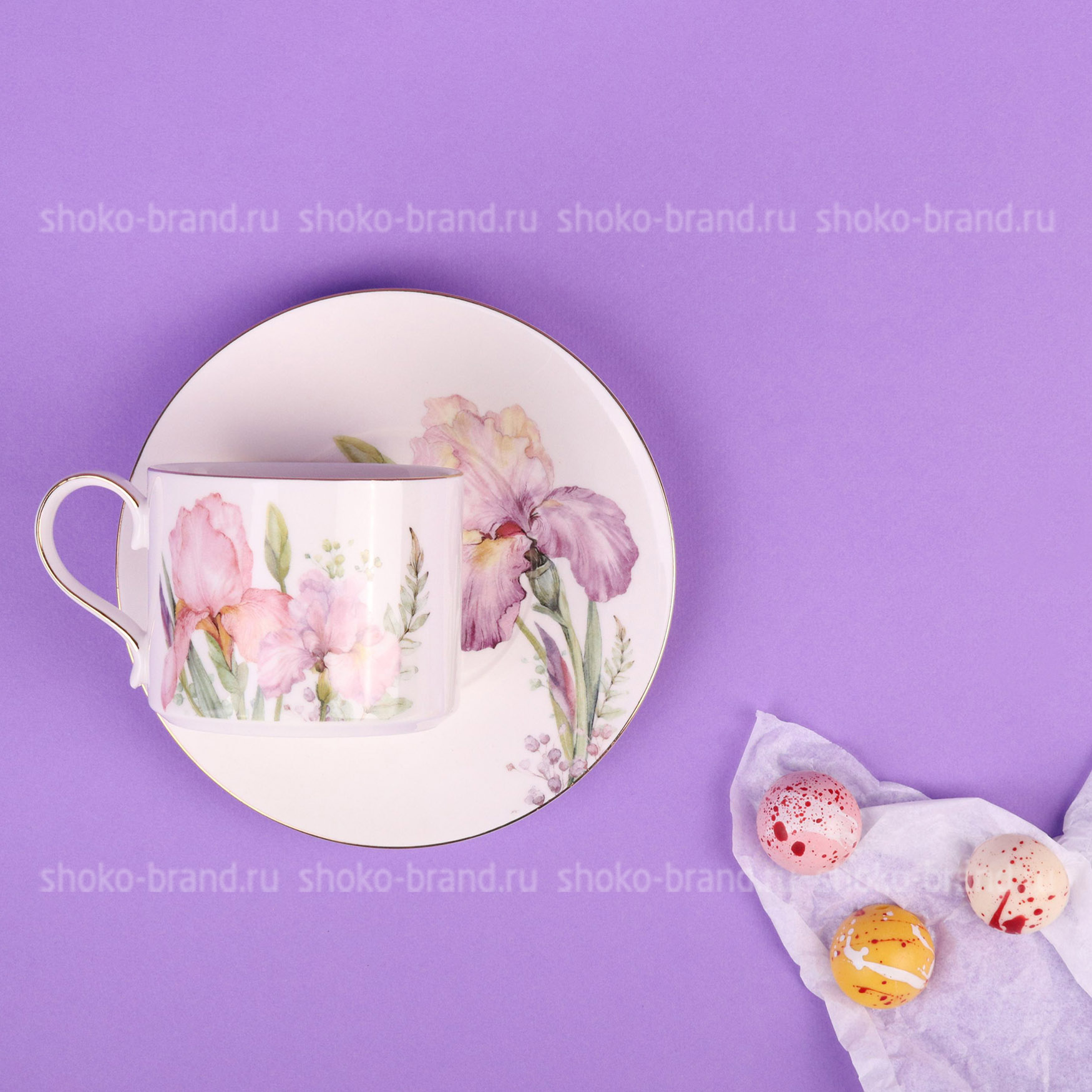 - Чайная пара рисунок Ирисы, фарфор 300 мл