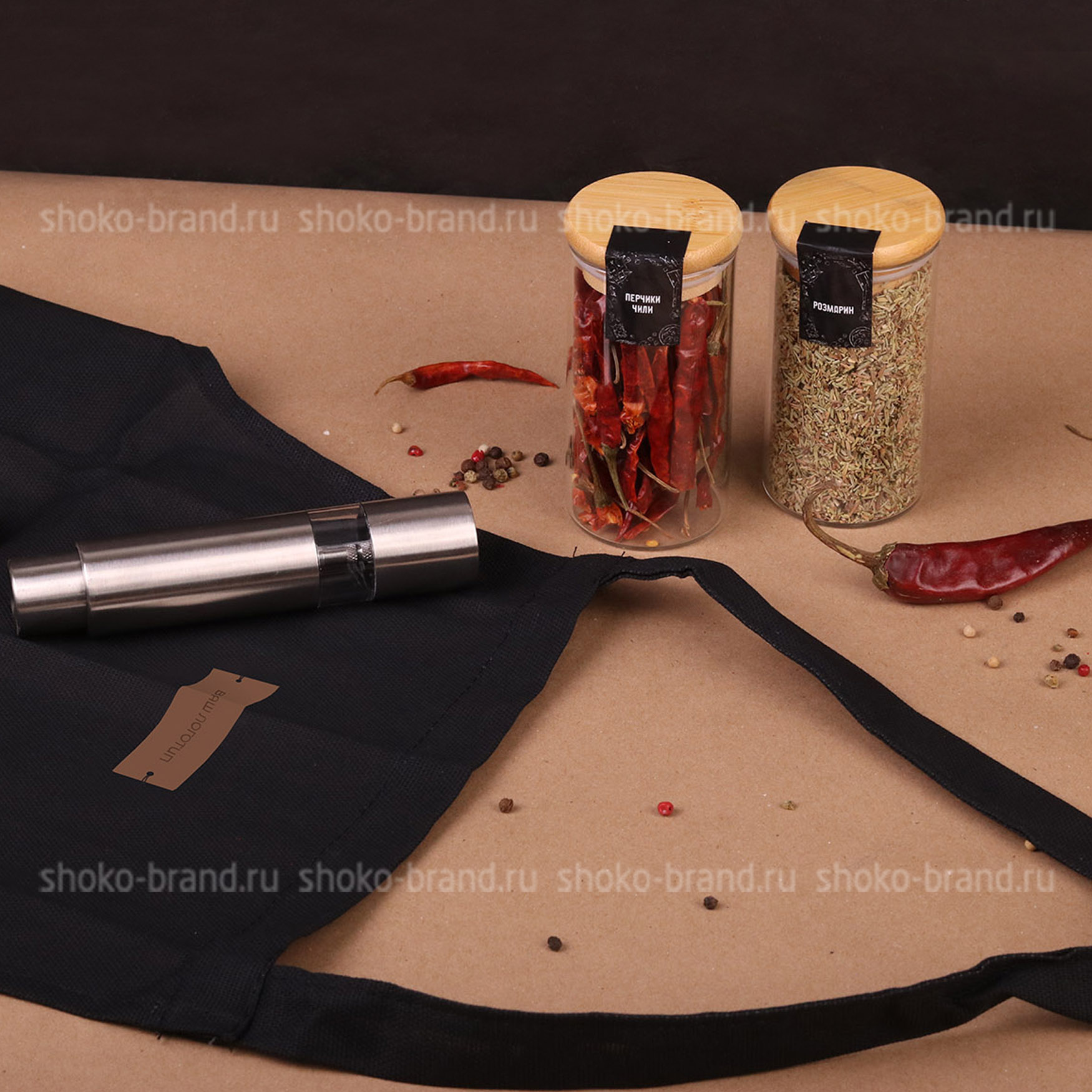 - Фартук, черный, 100% хлопок, 60*70 см
