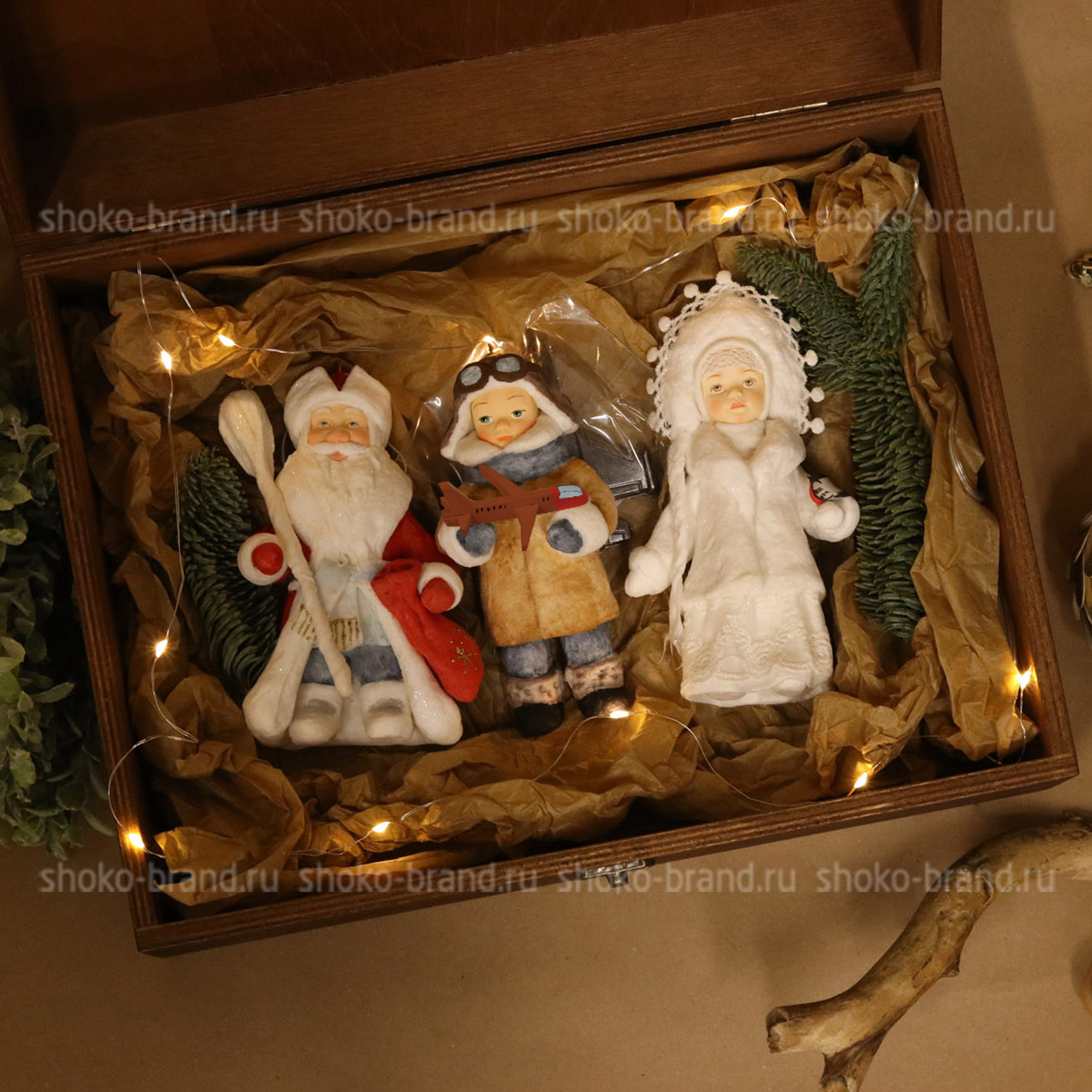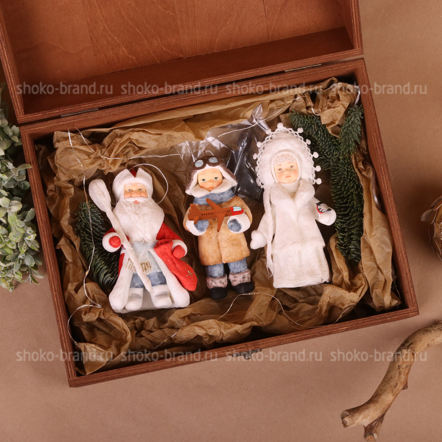 Уникальные авторские ёлочные игрушки в деревянной шкатулке