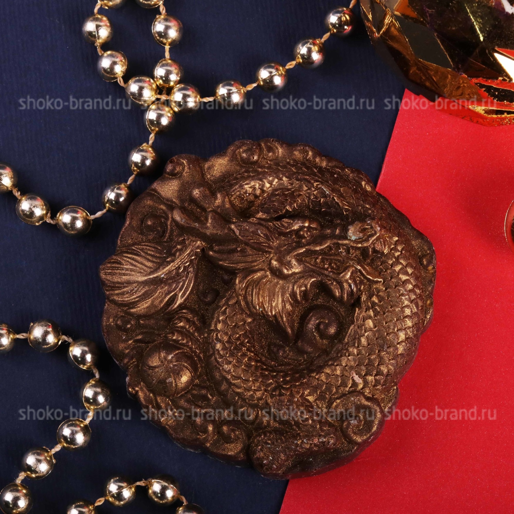 - Китайский дракон из бельгийского шоколада с позолотой, ручная работа 50 г