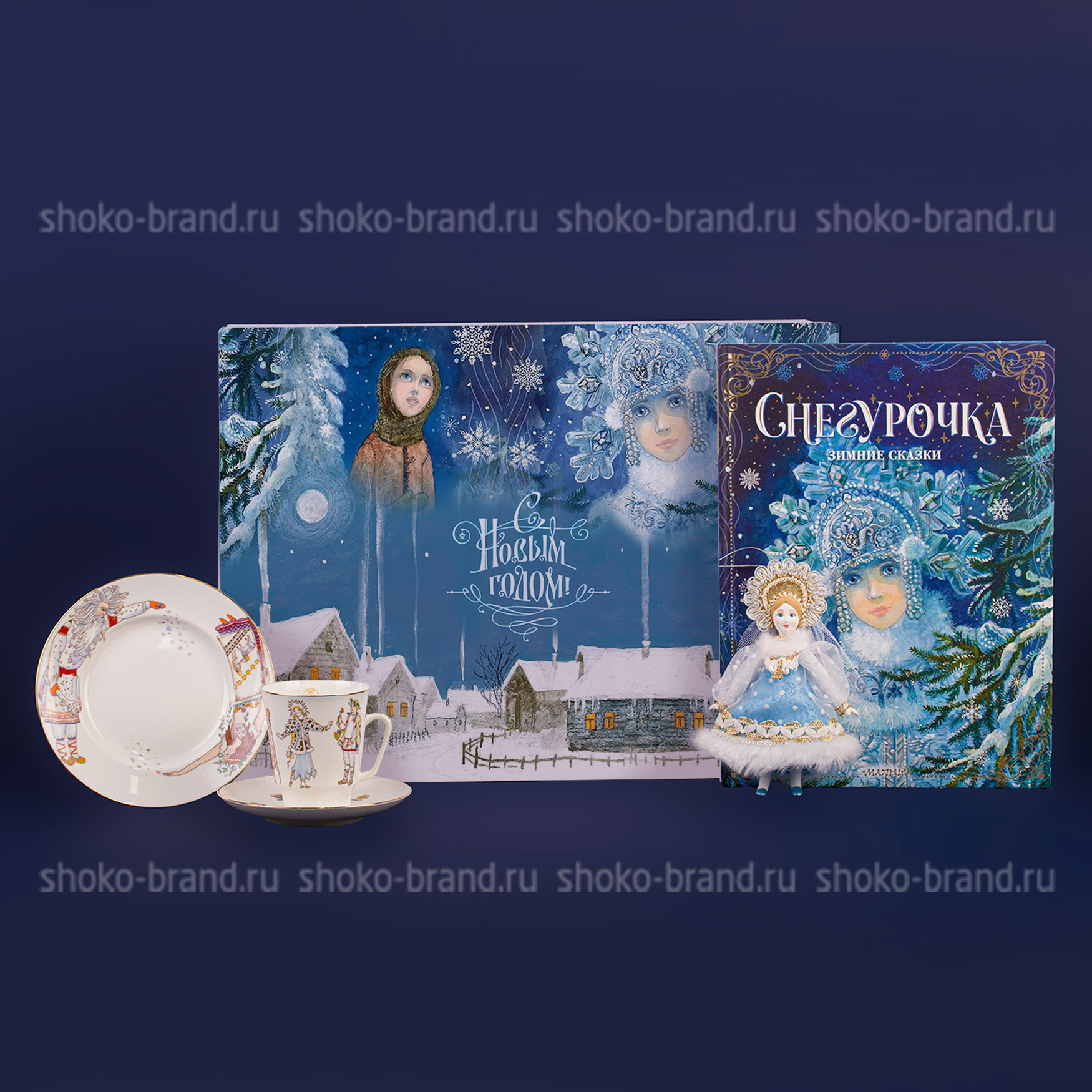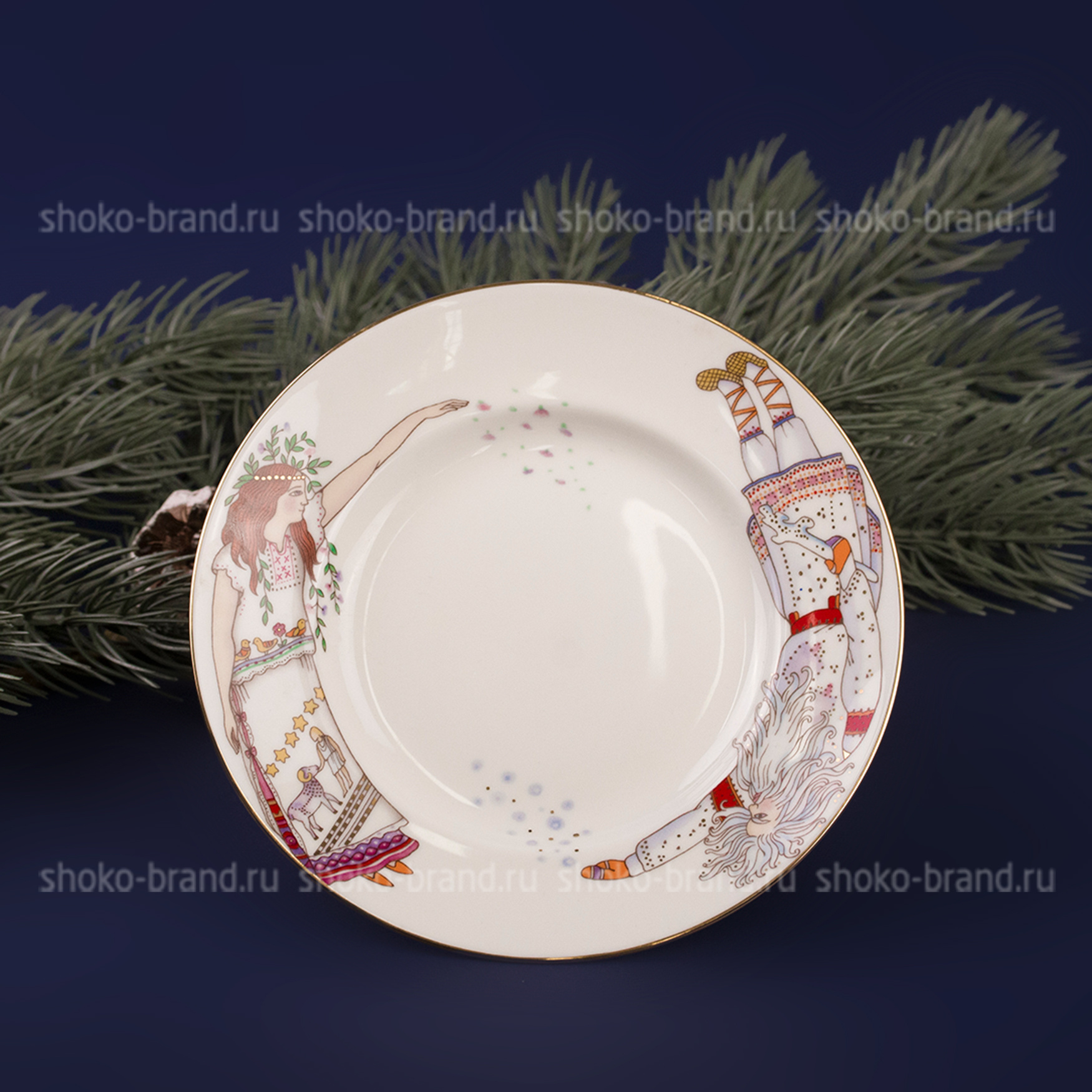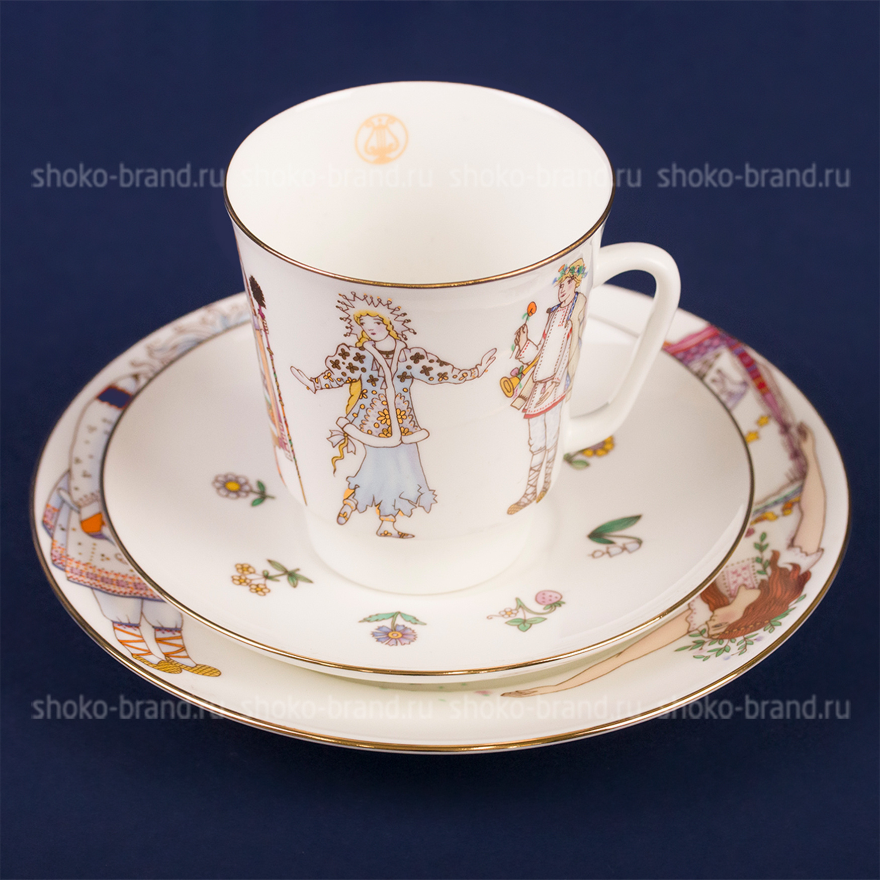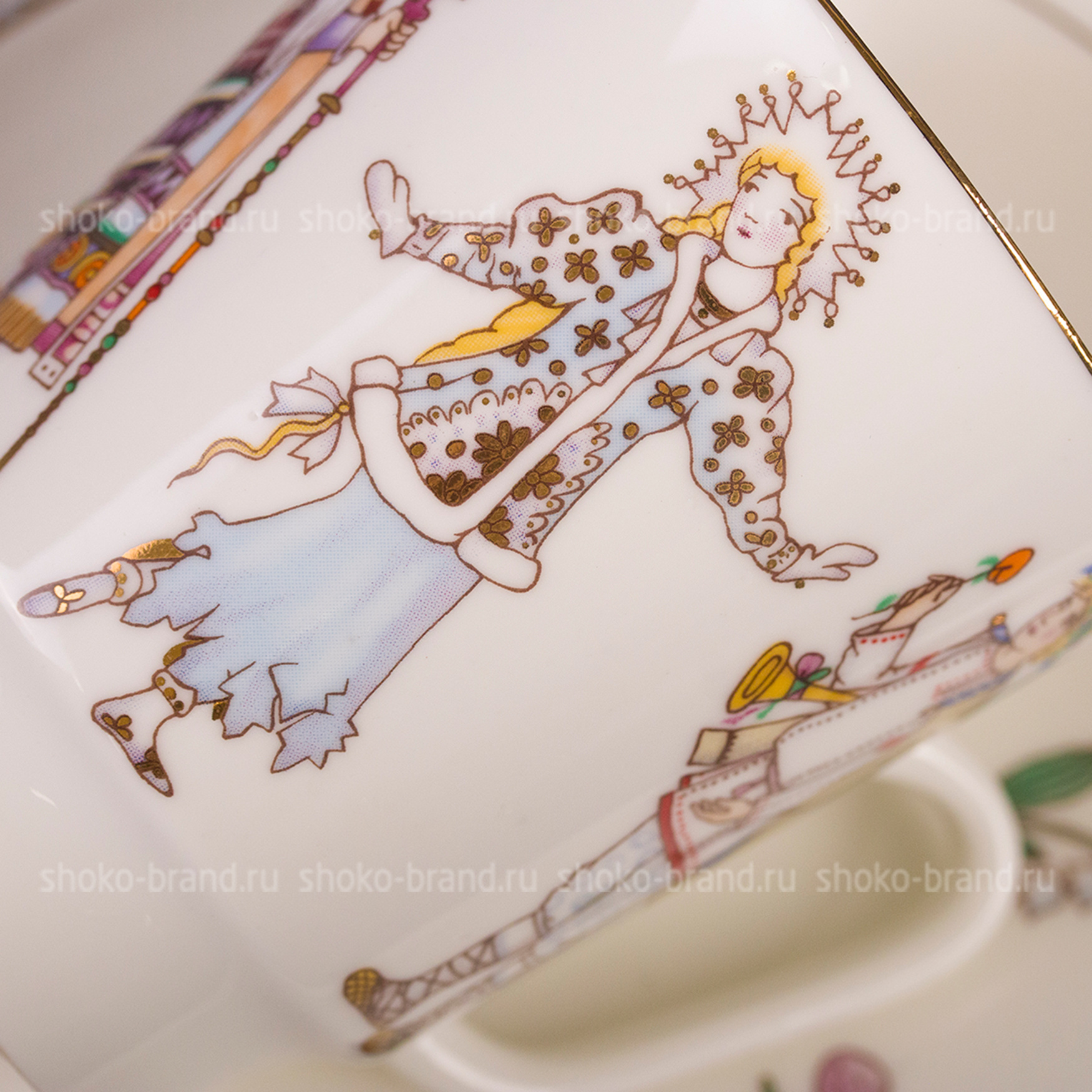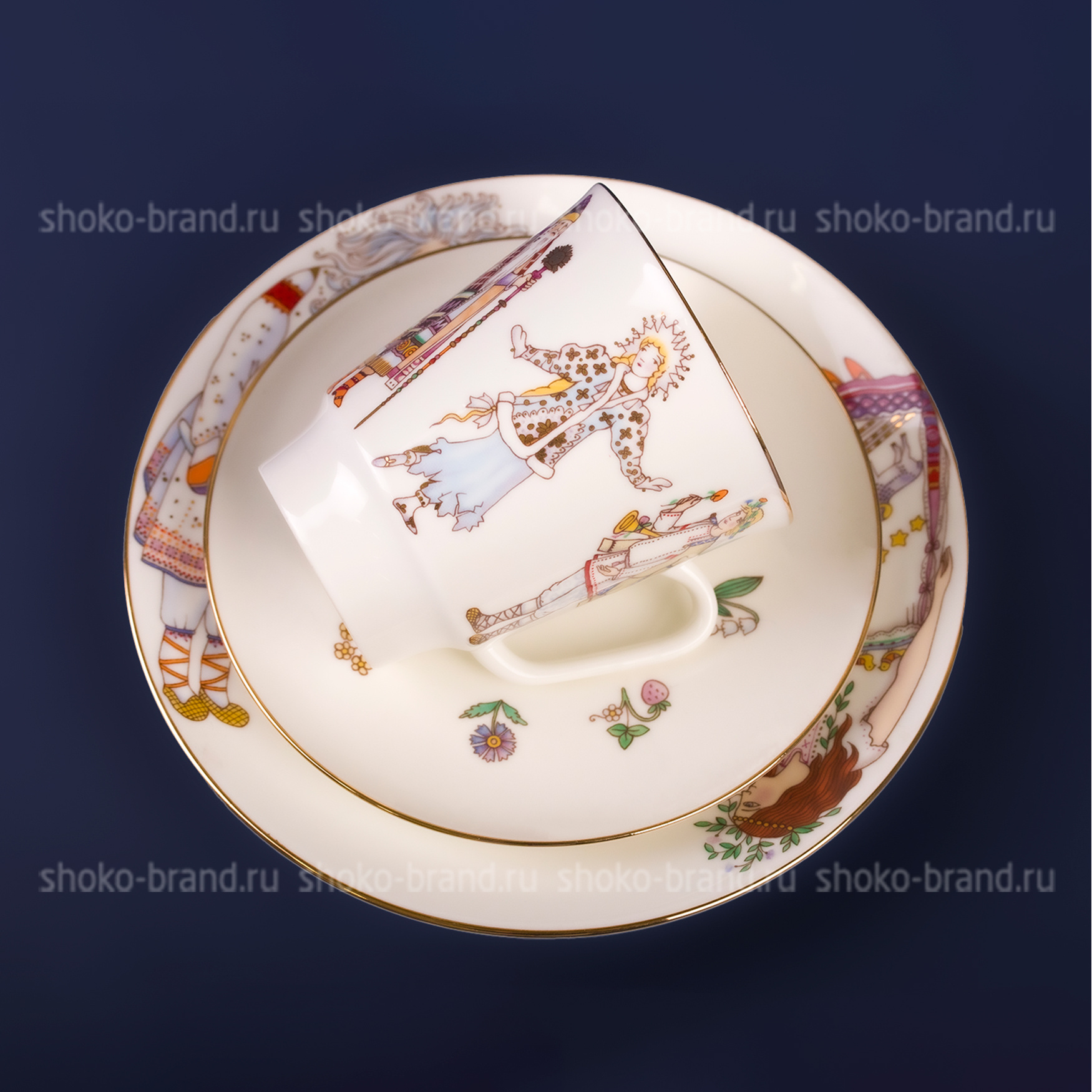 - Трехпредметный комплект чашка и 2 блюдца, рисунок Опера Снегурочка, костяной фарфор 165 мл
