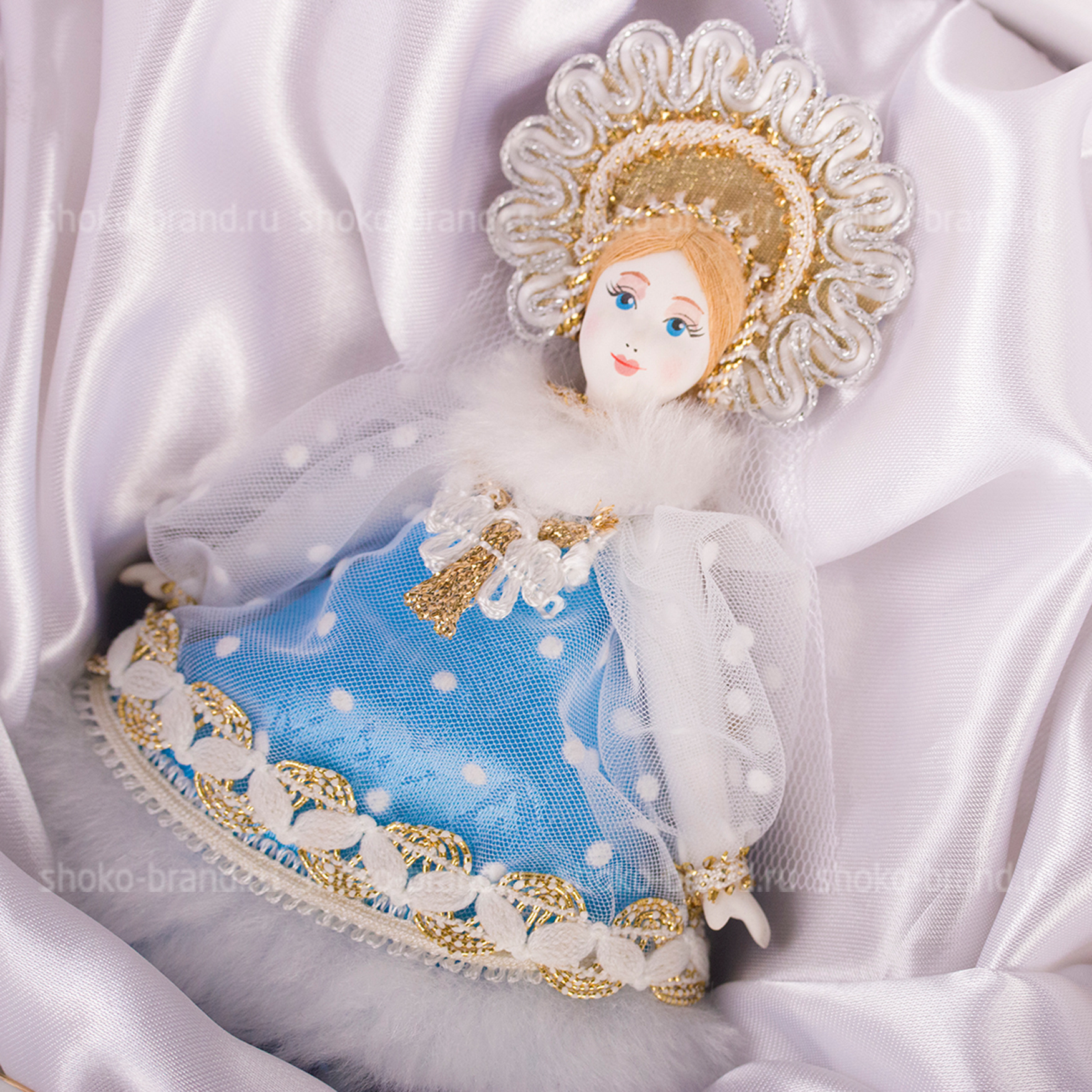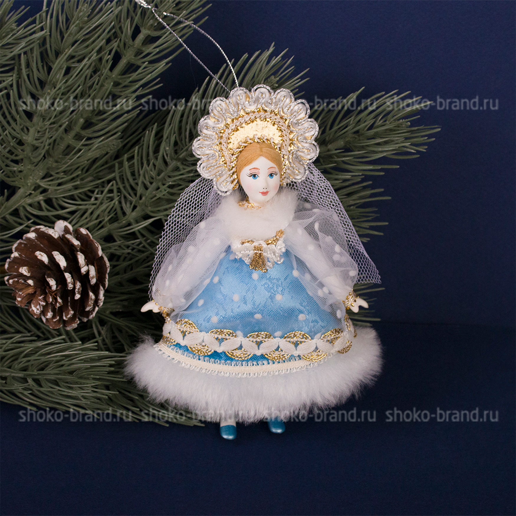 - Игрушка елочная из текстиля и бисквитного фарфора Снегурочка, ручная работа