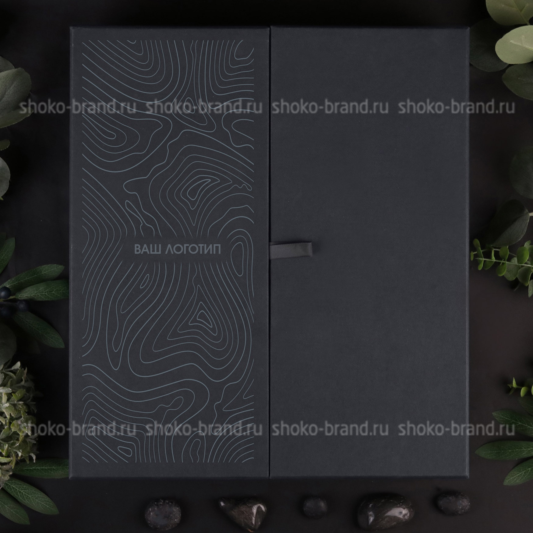 Состав - Коробка из кашированного картона с двумя створками на магнитах, черная