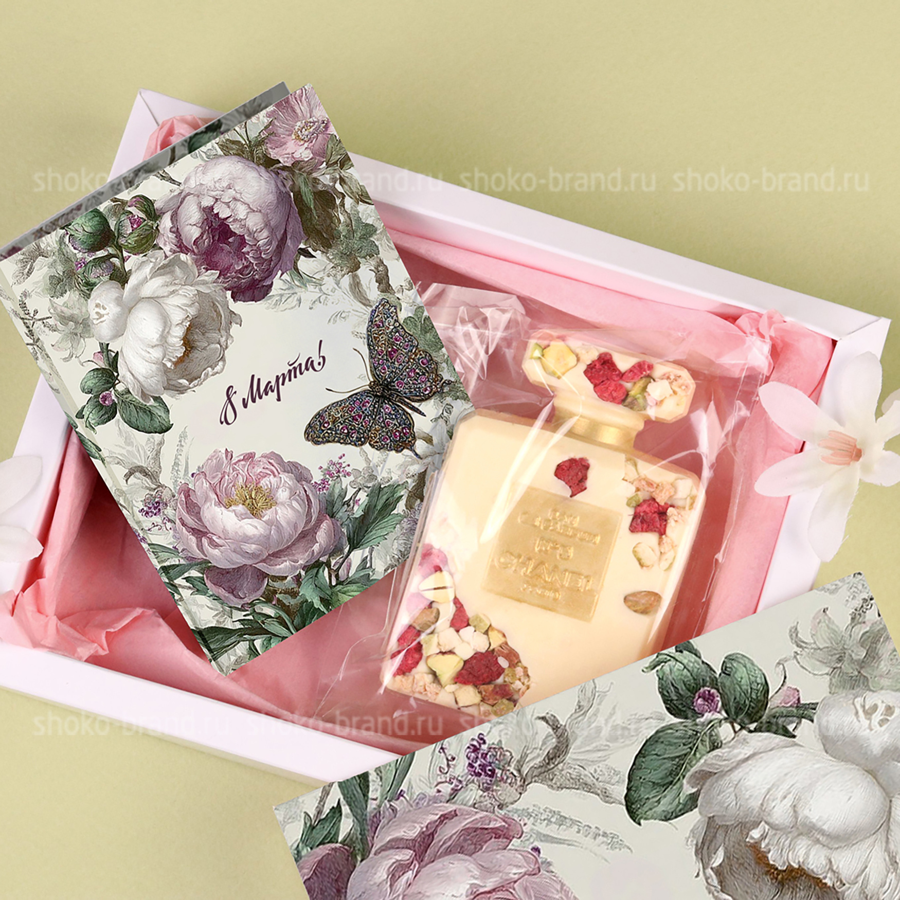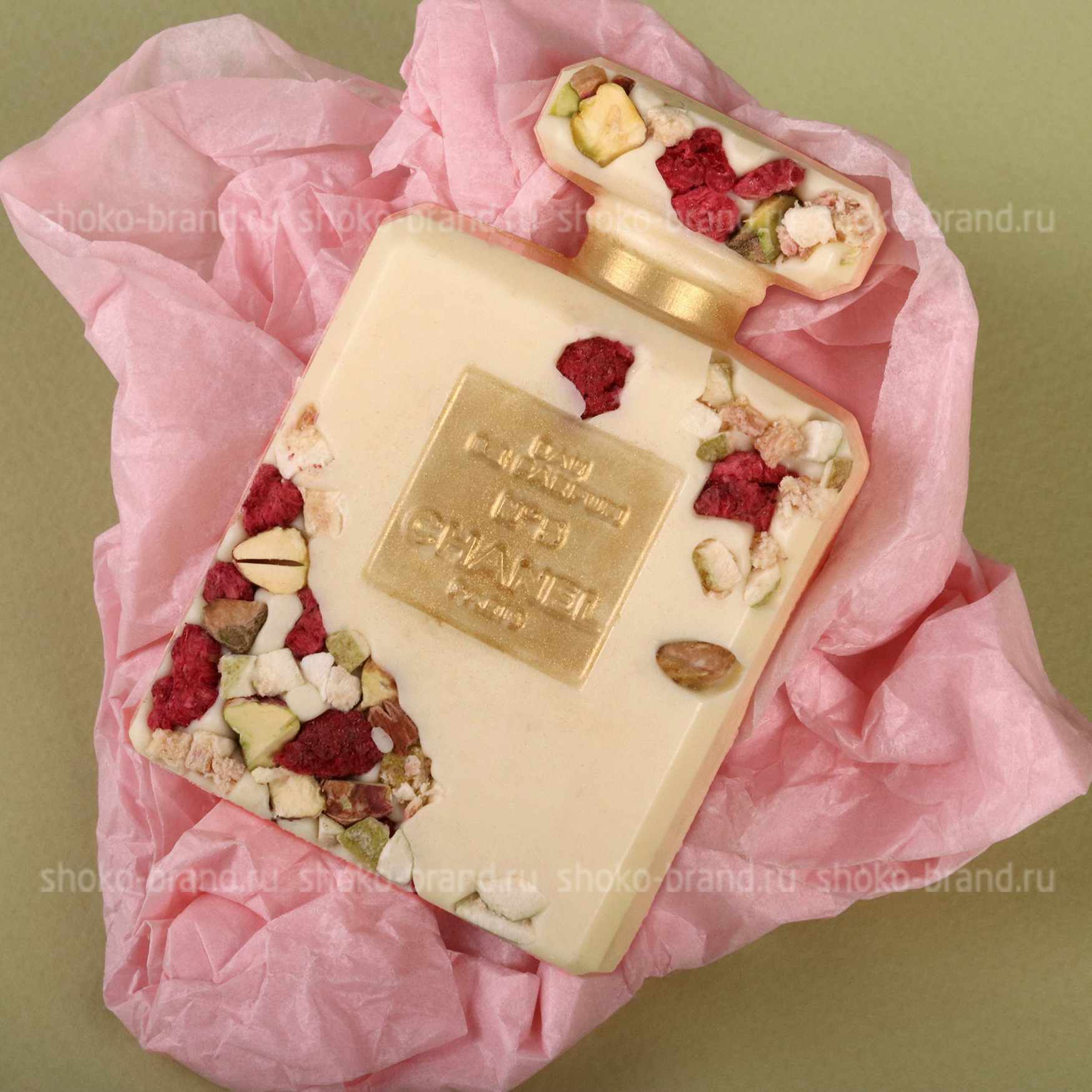 - Фигура в форме духов Шанель из белого шоколада с малиной, ручная работа 75 г